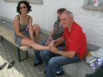 Fünf weitere Gaensefurther gingen am schönen Meisdorfer Schloss an den Start. Der Veranstalter registrierte mit 102 Teilnehmern über diese Distanz einen neuen Teilnehmerrekord. Alle samt sollten dann auf den ersten Kilometern gleich mal ordentlich schwitzen, denn es war nicht nur drückend feucht, es ging auch stetig bergauf. Keine Schwäche zeigen, schließlich gingen in Stiege bereits um sieben Uhr die Ultraläufer über 69 Kilometer an den Start und ab Alexisbad kämpften sich Sportler über die Marathondistanz bis ins Ziel nach Quedlinburg. Im Schatten der Wälder erreichte man Ballenstedt. Vorbei am Schloss blieb der idyllisch angelegte Schlossgarten leider links liegen. Dafür dann aber gute Sicht zur Roseburg und dem Harzer Wahrzeichen, dem weit entfernten Brocken. Bergauf, bergab erreichten die Läufer den Osterteich. Neidisch schweifte der Blick zu den Badenden. Ein Wegweiser verriet den nächsten Anstieg: Osterhöhe. Spätestens oben angekommen, wünschten sich die Flachlandläufer ihre lässigen Trainingsrunden in der Staßfurter Horst zurück. Der Abstieg nach Bad Suderode versprach Erholung. Noch einmal am Verpflegungspunkt gestärkt, ging es nun vorbei an der Bückemühle in Richtung Quedlinburg. Die Sonne brannte erbarmungslos, kein schattenspendender Baum, jede Anhöhe wurde nun zur Tortur. Auf der endlos erscheinenden Straße nach Quedlinburg flimmerte am Horizont eine Tankstelle in der Mittagssonne. Mühsam kam der Tross voran und obwohl die Straße vollkommen eben war, sah man immer mehr Sportler vom Lauf in den Fußmarsch wechseln. Nur gut, vor der Tankstelle kommt noch mal ein Getränkestand! Waren dann aber doch Kartoffeln, das Kilo für 2,00 € – so muss es einem bei einer Fatamorgana ergehen. Das Ortsschild war passiert, der Stadionsprecher war schon zu hören. Nur beim letzten Schlössermarathon in Potsdam erlebten die Bode-Runners wohl eine ähnlich quälende Sportplatzrunde. Trinken, Schatten, wieder trinken, Schatten. Respektvoll verfolgte man das Einlaufen der ersten Marathonläufer. Neben Schölers freute sich auch Sylvia Köhn über ihren ersten Platz in der Altersklasse der Frauen. Gut über die Anhöhen gekommen, war sie sichtlich stolz, diese lange Distanz erstmals ins Ziel gebracht zu haben. Die kommende Trainingswoche widmen die Bode-Runners ganz der Regeneration. Schwimmen und Radfahren im gemütlichen Tempo stehen auf dem Plan. Ob sie den Plan wohl einhalten werden?