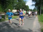 Als anspruchsvoll und für „Fortgeschrittene“ deklariert, sollte die Strecke ihrer Beschreibung durchaus gerecht werden. Bereits nach dem ersten Kilometer stieg die Asphaltstraße merklich an. Doch gerade als das Atmen zu anstrengend werden sollte, sorgte ein schattiger Waldweg wieder für Entspannung. Das Spiel zwischen Licht und Schatten erforderte die ganze Aufmerksamkeit der Läufer. Hatten die Veranstalter den quer liegenden Baum als Extra-Bonbon auf dem Weg drapiert? Wie bei der „stillen Post“ wurde vom Vordermann lauthals an den Verfolger weitergegeben: „Baum!“ Gehüpft, gegrätscht oder draufgetreten, die Barriere sollte für die Läufer kein Hindernis sein. Aus dem Wäldchen führte die Strecke hinaus auf die Felder. Bis zur Streckenteilung brannte die Sonne zusätzlich auf die erhitzten Köpfe. Streckenposten teilten nun die ankommenden Läufer auf: „Die Sieben Kilometer nach links, elf Kilometer nach rechts!“ „Machs gut, arme Bine“, verabschiedete sich Petra Becker von ihrer Vereinskollegin. Zusammen mit Heidi Schwenke vom BSV Eickendorf flitzte Becker nun in Richtung Konradsburg. Die Wahl der kürzeren Streckenlänge sollte sich am Ende gelohnt haben, denn beide Läuferinnen konnten in ihren Altersklassen auf das Siegertreppchen steigen.