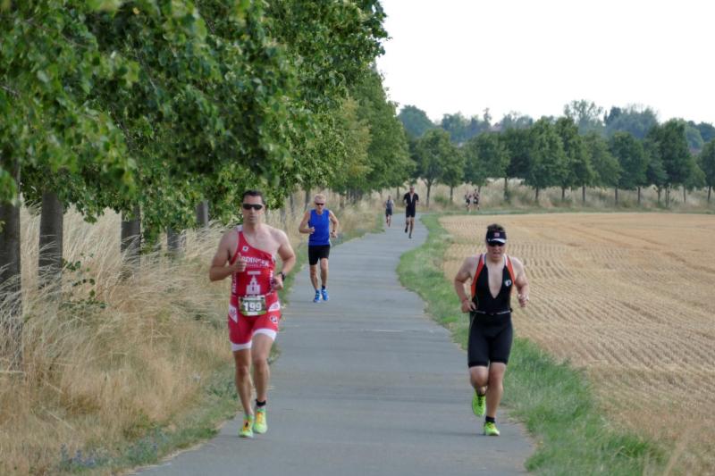 Viele Triathleten aus ganz Sachsen-Anhalt, die in der Landesliga um die Plätze kämpfen, gingen über die 1,5km Distanz wenige Minuten nach den Volkssportlern in das 26°C Grad warme Wasser des Löderburger Sees. Hier wurde überwiegend gekrault, das Feld blieb recht eng zusammen und langsamere Schwimmer aus der ersten Welle wurden sogar noch vor der ersten Boje überholt. Der Radwechsel klappte wie am Schnürchen, dann ging es über Löderburg auf die auf 30km gekürzte Radstrecke. Aufgrund der heißen Wetterbedingungen sicher keine falsche Entscheidung, wenn auch die Radspezialisten gern mehr profitiert hätten. Dafür hieß es dann die letzten Körner auf den zwei Laufrunden von zusammen 10km Richtung Athensleben zu geben. Während es recht große Abstände bei den Damen auf der Laufstrecke gab, lieferten sich die Herren auf Runde eins einen Zweikampf und auf der zweiten Runde sogar einen Dreikampf um die Podestplätze.