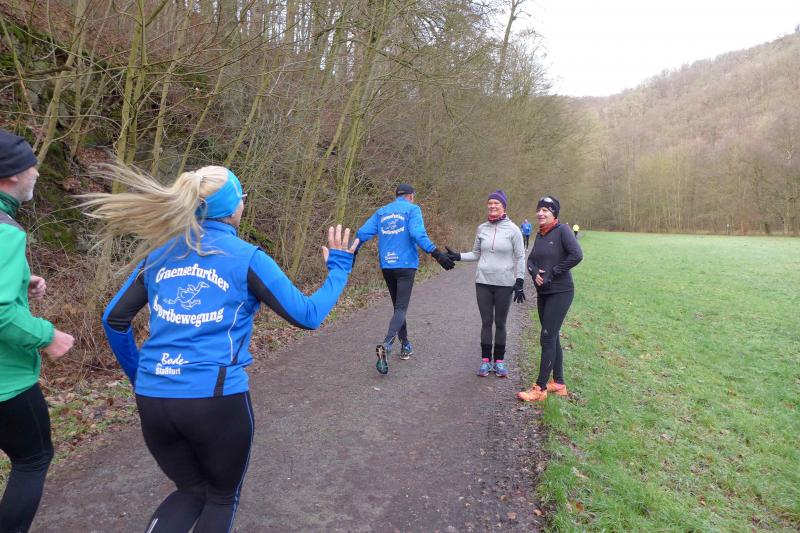 Doch die Bode-Runners arbeiten nicht nur am Trainingszustand, auch die Vorbereitungen auf das große Staßfurter Lauf-Ereignis Salzland-Lauf sind gestartet. Die Anmeldung für die drei angebotenen Strecken über 1,5, sechs oder zehn Kilometer ist seit dem Jahresbeginn freigeschaltet (siehe Link unten). Das Organisationsteam, bestehend aus dem Veranstalter der Gaensefurther Sportbewegung, dem Schirmherren mit Oberbürgermeister Sven Wagner und den beiden Sponsoren, der wobau Staßfurt und den Stadtwerken Staßfurt, hat nochmal ordentlich am Konzept gefeilt. So wurden die Startzeiten geändert und die Laufrichtung gedreht. „Wenn das nicht einen ganz neuen Laufeindruck bringt!“, freut sich die Laufgruppe bereits jetzt. Sehr zum Ansporn der ganz jungen Laufgeneration, nämlich der Vorschulkinder, inbegriffen ihrer Eltern und Großeltern, wird es einen 400 Meter langen Kalinchen-Lauf geben. Doch bis dahin wird noch viel Schriftverkehr, Gesprächsstoff und Gedankengut die Bode hinunterlaufen. Es ist aber überliefert, dass auch die beiden Hülskaths ihren 50 Kilometer langen Rückweg gemeistert haben…