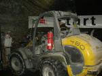 Nur in leichte Laufsachen geschlüpft, hängten die Sportler ihre Kleidung an großen Haken auf. Mit einer langen Kette wurden die Sachen dann unter die Hallendecke gezogen. Wie bei den echten Bergleuten auch, ist die Kleidung nur dort vor Verschmutzung geschützt. Weiterhin ausgerüstet mit Helm und Grubenlampe, eilten die Läufer durch das feuchtkalte Herbstwetter zum Brügman-Schacht. Der Förderkorb ließ nicht lange auf sich warten und schon bald wirbelte die 30 Grad warme Abluft vorbei. Nach drei Minuten Abwärtsfahrt bis auf 680 m Tiefe, eröffnete sich den Teilnehmern ein Erlebnisbergwerk der Superlative. Die musikalische Begrüßung durch die Bergmannskapelle nahmen die noch tauben Ohren nur gedämpft wahr. Aber den Sportlern und gut 150 Zuschauern blieb noch genug Zeit zur Akklimatisierung.