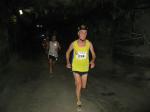 Um 11.00 Uhr waren dann alle 479 Starter bereit für das große Abenteuer. Eine gemessene Luftfeuchtigkeit von 23,5 Prozent, was einem Lauf in der Wüste entspricht, Temperaturen zwischen 28 bis 37 Grad Celsius, extrem glatte Salz-Passagen und die Steigung der sogenannten „Mauer“ mit 24 Prozent, sollte einem harten Bergmann-Arbeitstag entsprechen können. Verhalten gingen die Bode-Runners an die erste Fünf-Kilometer-Runde. In den spärlich beleuchteten Gängen hallte es: „Anja? Ja! Lutz? Ja! Dirk? Ja! Mike? Ja! Dann kam die Mauer: Kleine Schritte, die Arme schwangen kontrolliert mit, gleichmäßig tiefe Atemzüge, der Puls schlug bis unter den Helm, im Lichtkegel rieselte der Salzstaub. Nach gut zwei Kilometern Steigung: „Anja?“ Mehr bekam Sabine nicht raus. Keine Antwort. An der Trinkstelle schluckten die Läufer dankbar das gereichte Wasser. Einen Becher noch über den Kopf, irgendwie schmeckte jetzt alles salzig. Auf dem langgezogenen Plateau kamen die Läufer wieder zu Luft. Die letzten zwei Kilometer der ersten Runde ging es bergab. Nur mit Lampe und gutem Laufschuh war ein rasantes Tempo möglich. Wer im Dunkeln tappte oder ängstlich auf die glänzenden Salzstellen reagierte, schaltete lieber einen Gang runter. Vorbei an der riesigen Frischluftanlage, stieg den Läufern die Würstchenluft aus der unterirdischen Gastronomie in die Nase. Nun war es nicht mehr weit und 150 Zuschauer puschten die tropfenden Läufer in die zweite Runde. Bevor es wieder an die Mauer ging, verlangte der Körper noch einmal Wasser. Während manche gleich in den schnellen Schritt wechselten, hatten andere nur ein Ziel: Nicht stehen bleiben! Langsam aber beständig ging es wieder nach oben. Hitzestau, der Kopf und die Beine drohten zu platzen, Helm und Lampe nervten nur noch, man hatte das Gefühl die Decke fällt einem auf den Kopf. Gänsehaut pur, als die Kuppe endlich erreicht war. Ja!!! Los, nach Hause!