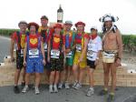 Neun Bode-Runners der Gaensefurther Sportbewegung gehörten zu den glücklichen Teilnehmern am Marathon des Chateaux du Medoc. Zusammen mit Sportlern aus Halberstadt, Aschersleben, Bernburg und Frankfurt bezog man im Feriendorf Lacanau an der südfranzösischen Atlantikküste Quartier. Ein sonnenverwöhntes Paradies unweit der Chateaus, welche sich durch die edelsten Weine dieser Erde ihren Namen machten. Erwartungsvoll begab sich die Gruppe in das Meer der knapp 9.000 Läufer und nach einem fast zwei stündigen Showprogramm, ging es dann wirklich auf die 42,195 Kilometer lange Weinverkostung. Der erste WC-Stopp erfolgte bereits vor dem ersten Kilometerschild, denn der eigene, gut gefüllte Getränkevorrat machte sich nach dem langen Stehen in morgendlicher Kälte bemerkbar. Kein leichtes Unterfangen, hatte man doch die ursprüngliche Laufbekleidung gegen ein Clown-Kostüm eingetauscht. Nachdem alle Hosenträger und Sicherheitsnadeln wieder an der richtigen Stelle waren und man inzwischen von schätzungsweise 4.000 Läufer überholt wurde, verließ die Gruppe unter dem Beifall zahlreicher Schaulustiger Pauillac. Eine Runde um die ersten Chateaus war zu absolvieren, bevor man nach 22 Kilometern den Ort wieder erreichen wollte. Ziel war, diese Strecke ziemlich zügig zu laufen, dann bei Kilometer 22 Renate Liedtke mitzunehmen und den Rest des Marathons gemeinsam zu genießen. Einen ersten erlesenen Tropfen Beychevelle gab es bereits bei Kilometer sieben. À la vôtre! Läufer aus der ganzen Welt prosteten sich genüsslich zu, die Bode-Runners vor jedem Schloss im Fotoshooting. Alle Verpflegungsstände waren üppig gedeckt. Neben frischem Obst reichte man den Läufern Salzgebäck, verschiedene Brot- und Käsesorten, Kuchen und Kekse, Trockenfrüchte, Wasser, Cola und natürlich immer wieder ein Becherchen Rotwein. Nach gut 2,5 Stunden erreichte man wieder Pauillac und Renate übernahm die Tempoarbeit. Mit den Chateaus Mouton und Lafite Rothschild nährte sich die Gruppe einem weiteren Höhepunkt. In der Parkanlage am prunkvollen Schloss, kredenzte man die edlen Tropfen natürlich in Gläsern. Eine logistische Meisterleitung für über 8.000 Läufer! Bereits mächtig dem Alkohol verfallen, ließen es sich einige Läufer nicht nehmen, im Teich der Rothschilds ein ernüchterndes Bad zu nehmen. Außer der zunehmend schwerer werdenden Beine verkrafteten die Staßfurter Läufer die ungewohnte Herausforderung bislang ohne Verluste. Eine Zielzeit von 6:30 Stunden war vom Veranstalter als Zeitlimit vorgegeben, dass müsste doch zu schaffen sein! Inzwischen war Kilometer 36 passiert, die Anstiege zu den höher gelegenen Chateaus lagen hinter den Läufern und es ging hinaus auf die Küstenstraße. Vor einem kleinen Imbisswagen drängte sich die Läuferscharr. Vom dicken Bayonner Schinken schnitt ein waschechter Franzose dünne Scheiben, die fluchs geschnappt, durch die Masse gereicht wurden. Ein leicht salziger Gaumenschmaus für den sich die kleine Pause gelohnt hatte! Nicht weit entfernt roch man bereits das nächste Highlight. Auf großen Tabletts wurden Austern mit Zitronen gereicht. Dazu servierte man den Läufern einen trockenen Weißwein. Für alle Bode-Runners eine Mutprobe die bereits im Vorfeld im Pflichtenheft aufgenommen wurde. Und eine Erfahrung, welche die meisten nicht noch einmal haben müssen. Da zog der Duft von frisch gegrilltem Rindersteak die Läufer schon eher zum nächsten Anlaufpunkt. Wer noch nicht genug hatte, konnte sich dazu auch einen feinen Cognac einschenken lassen. Nach diesen Schlemmermeilen und der brütenden Sonne sehnte man sich nach dem Ende. Nun kam auch noch ein Franzose mit einem riesigen Spiegel auf die Mädels zu. Danke, wir wissen wie es um uns gestellt ist, versuchte man zu übermitteln. Aber höflich lud er an den Straßenrand zur Auffrischung der Schminke ein, schließlich sollte beim Zieleinlauf alles perfekt sein. Nun hatte man also auch noch die Deutschlandfarben auf der Wange und nachdem alle noch ein Stieleis naschten, kamen auch die Kräfte wieder zurück. Ein Blick auf die Stoppuhr: „Das schaffen wir noch unter sechs Stunden!“ Gemeinsam genoss man nach 5:58 Stunden das Überqueren der Ziellinie, über 3.000 Läufer sollten noch folgen. Nicht umsonst spricht man vom „längsten Marathon der Welt“.