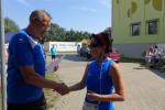 Während Kathleen Mahler und Börners nach dem Salzlandsparkassen-Triathlon vom Vortag nur auslaufen wollten, versprach Harald Fümel seiner Ehefrau Christa ein gemeinsames, ruhiges Sonntagsläufchen. Also ging der Auftrag, ein schnelles Rennen für die Bode-Runners abzuliefern, an Sandra Zelmer. Nach dem Radweg bis Briest führte die Laufstrecke durch den Tangerhütter Wald, in dem die Temperaturen etwas angenehmer waren. Die zusätzlichen Wasserstellen wurden gut angenommen und am Verpflegungspunkt der Tangerbrücke war dann auch schon die Wendemarke für den 6,5-Kilometer-Kurs erreicht. Zelmer musste noch weiter, bis ein Streckenposten den Wendepunkt der Neun-Kilometer-Strecke markierte. Die Sportlerin setzte den Auftrag sehr engagiert um und holte sich nach dem Zieldurchlauf prompt den Gesamtsieg bei den Frauen. Zeitgleich und eigentlich viel schneller als geplant, liefen Mahler und Börner auf Gesamtplatz 2 der Frauen ein. Während anlässlich der Jubiläumsausgabe noch einige Präsente an verdiente Sportfreunde des Tangerlaufs gingen, feierte auf Grund der geringen Teilnehmerzahl fast jeder Finisher einen Podestplatz. „Von wegen Auslaufen!“, scherzten und freuten sich die Sportfreunde unter der wohltuenden Dusche über ihre Platzierungen.