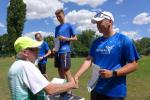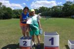 Der Schnupperlauf über einen Kilometer war für den Bode-Runners-Nachwuchs schnell Geschichte, so dass sich Lenya und Emily im Schatten oder unter dem Rasensprenger des SV Grün-Weiß Giersleben schnell wieder akklimatisieren konnten.