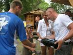 Schon zu Jahresbeginn planten Bode-Runners und Triathleten eine Sommerparty zwischen all den Wettkampfterminen am 1. August fest ein. Diesmal sollten alle in Kajaks steigen und die Bode hinunterschippern. Die ganz Sportlichen trafen sich bei fast 30°C in Gaensefurth und liefen sozusagen zur Erwärmung bis nach Wolmirsleben, wo auch schon Boris Funda mit seinen Booten wartete. Nun sollte der spannende und für die meisten ganz ungewohnte Teil des Tages kommen. Kein fester Boden mehr unter den Füßen und ab in einen Kahn. Immerhin war man ja nicht allein, denn vor oder hinter einem hatte man ja noch einen Partner und rundherum gesellten sich noch 14 weitere Kajaks. Der fröhlich laute Pulk startete nun und bewunderte Natur und Landschaft entlang des Flüsschens. In Unseburg erregte die “Invasion“ der vielen Boote schon Aufsehen. Munter ging es weiter und bei Klatsch und Tratsch entstand so mancher Bootsstau. Für weitere Unterhaltung war auch gesorgt, denn aus irgendeinem nicht näher benanntem Boot ergoss sich ständig eine Wasserfontäne, schließlich sollte es einem ja nicht zu warm werden. Von innen war auch für Abkühlung gesorgt, denn ein Teil der vielen Biergewinne bei Wettkämpfen konnte nun endlich geleert werden. Heil angekommen am Gaensefurther Schloss, wurde man von den Nichtpaddlern schon empfangen. Hier wurde nun gegrillt und üppig getafelt. Bald hatten sich alle von den ungewöhnlichen Strapazen erholt. Und ein super Tag nahm sein Ende.