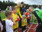 Wahrscheinlich hat das ideale Laufwetter den ein oder anderen doch zum Start animiert, auf jeden Fall war der Andrang zum siebenten Wertungslauf im Gaensefurther Läufercup enorm groß. Auch der letzte Nachmelder erhielt weit nach Anmeldeschluss noch eine Startnummer, so dass mit gut zehn Minuten Verspätung die Hauptwettkämpfe an den Start gingen. Kein Problem für Jan, welcher als dritter beim Bambinilauf bereits mit seiner Medaille um den Hals, gespannt den Start von Papa Jörg Eisfeld verfolgte. Die breite Tartanbahn im Haldenslebener Waldstadion bot genügend Platz für die 233 Starter. Durch die zu absolvierende Stadionrunde entspannte sich das dichte Läuferfeld und nach einer kurzen Asphaltstrecke sollte der Kurs nur noch über weiche Waldwege führen. Neben den acht Startern der Gaensefurther Sportbewegung kämpften auch viele Sportler des BSV Eickendorf und der TSG Calbe um die begehrten Wertungspunkte im Cup. Bei den Frauen über 7,5 Kilometer hatte Katrin Müller von der TSG Calbe die Nase vorn. In der Altersklasse W50 bot sie sich einen heißen Kampf um die Plätze, welche Calbe und Eickendorf unter sich ausmachten. Lediglich in der W60 konnte sich Bode-Runner Renate Liedtke einen dritten Platz sichern. Sabine Börner holte sich mit Tochter Tina Unterstützung aus Hamburg. Die Laufgruppe Roland e.V. Haldensleben freute sich über so weitgereisten Besuch und vergab gerne einen zweiten Platz (Altersklasse Frauen) in den hohen Norden. Alle Männer ab der Altersklasse M65 starteten ebenfalls über die Kurzstrecke. Während Volker Schumann in der M70 nur der undankbare vierte Platz blieb, siegte Horst Kühn in der M75 auf Platz eins (beide BSV Eickendorf).