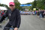 Über herrliche Wald- und Wiesenwege war bald die Talsperre Königshütte erreicht, dann ging es rasant bergab, bis den Läuferbeinen der nächste Anstieg zur Ruine Königsburg bevorstand. Es roch nach frisch geschnittenem Kiefernholz und übergroße Pilze grüßten vom Wegesrand. Am Verpflegungsstand nach 9,5 Kilometern trennten sich die Strecken und Renate Liedtkes erster Platz in der Altersklasse W60 war nur noch 500 Meter entfernt. Für die Langdistanz ging es wieder auf 500 Höhenmeter, Schwerstarbeit durch matschige Wiesen und über kurvige, wurzelreiche Trampelpfade. Scheinbar war man hier den Wolken so nahe, dass es fein nieselte, was aber eher als angenehm empfunden wurde. Der Wirtschaftsweg vor dem Stausee Mandelholz brachte weitere Erholung, bevor die Fähnchen an den Bäumen die Läufer wieder in den dichten Wald lotsten. Das Teilnehmerfeld hatte sich inzwischen weit auseinander gezogen, so dass man oft keinen Läufer mehr vor sich sah. Der Stausee war umrundet und an der Kalten Bode ging es wieder zurück nach Königshütte.