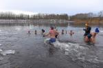Vorsichtig, zum Teil barfuß, ging es den verschneiten Hang zum Ufer hinunter, bevor der große Zeh die Wassertemperatur prüfte. "Na zwei Grad sind es bestimmt!", stellten die Eisfüße erleichtert fest. Die freigelegte Badestelle war schnell ausgefüllt, so dass es nur in kleinen Gruppen in den Schachtsee ging. Mit 20 bis 25 Eisbadern hätte Rottstegge schon gerechnet: „Bei 40 haben wir aufgehört zu zählen!“, meinten die begeisterten Helfer, die nicht mit so vielen Teilnehmern gerechnet hätten. War für die Debütanten ein kurzes Eintauchen vollkommen ausreichend, hielten es die Profis schon einige Minuten im Eiswasser aus. Durchgezogen und eine echte Eisscholle in den Händen - das zauberte an diesem Tag ein stolzes Lächeln in viele Gesichter. Und entgegen den sonstigen Eisbadeterminen, an denen man den Elementen ausgesetzt ist, war das Anziehen im extra aufgebauten Wärmezelt blanker Luxus. Warme Getränke und eine leckere Bratwurst, die Bode-Runner-Eisfüße kommen im nächsten Jahr gerne wieder.