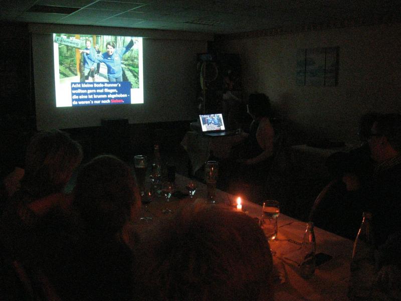 Wer die Bode-Runners kennt weiß, dass auch an so einem Abend die sportliche Betätigung nicht fehlen darf. Auf den Kegelbahnen, beim Billard und auf der Tanzfläche bestand reichlich Gelegenheit dazu. Natürlich hatten sich die Organisatoren für die Neumitglieder auch wieder etwas einfallen lassen, um sie offiziell in ihren Reihen zu begrüßen.