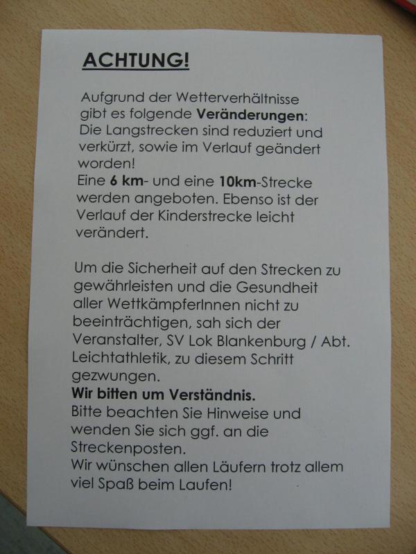 Winterliche Verhältnisse sind eigentlich nichts Ungewöhnliches beim Regensteinlauf, die extremen Bedingungen zwangen den Veranstalter SV Lokomotive Blankenburg aber doch zu drastischen Änderungen. Da Streckenabschnitte durch Schnee und Eis teilweise nicht passierbar waren, verschwand der lange Kanten über 14 Kilometer komplett aus dem Angebot.