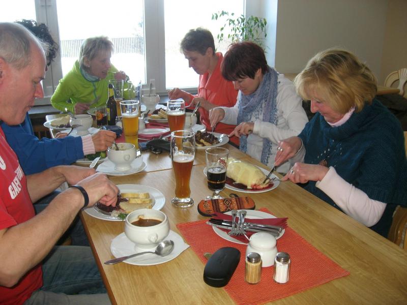 Noch die 30 Kilometer vom Trainingslauf des Vortages in den Beinen, schnitten die Frauen bei den Platzierungen am besten ab. Lutz Klauß sah sich wieder als Hase für das Damentrio, wobei nur Sylvia Köhn bis zum Ende folgen konnte. An den Bergpassagen mussten Sabine Börner und Petra Becker abreißen lassen, der heftige, minus acht Grad kalte Wind ließ die Abstände dann immer größer werden. Am Ende siegte Köhn in ihrer Altersklasse, Börner rettete einen zweiten Platz über die Ziellinie, Becker und Renate Liedtke trösteten sich mit einem vierten Platz. Die sieben Bode-Runners der Gaensefurther Sportbewegung wurden von zwei Triathleten unterstützt, welche durch ihre Ergebnisse fleißig Punkte für die Mannschaftswertung beisteuerten. Schnellster Mann aus dem Verein war Matthias Lampe, der die anspruchsvollen elf Kilometer in 50 Minuten zurücklegte. Fünf Minuten später war dann leider auch der heiße Tee Geschichte. Die warme Dusche und das anschließende traditionelle Klöße essen auf dem „Ziegenkopf“ waren letztlich Entschädigung für Kälte, Kampf und Muskelkater.
