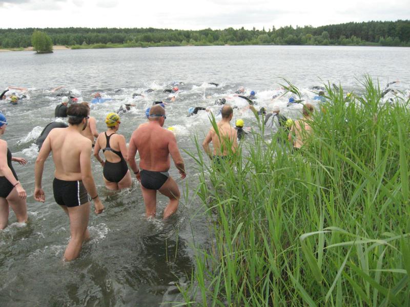 In der Nähe von Stendal, am idyllisch gelegenen Waldbad Wischer, starteten am Wochenende knapp 90 Teilnehmer über die ausgeschriebene olympische Distanz des SV Wasserfreunde Stendal 1923. Unter ihnen auch sechs Mutige der Gaensefurther Sportbewegung. Routiniert liefen die Vorbereitungen ab. Nachdem das Fahrrad mit Helm, Schuhe und Startnummerngürtel neben der Wasserschüssel für die Dreckfüße ihren Platz im Wechselgarten gefunden hatten, erfolgte im 21 Grad warmen Baggersee der Startschuss für die 1,5 Kilometer lange Schwimmstrecke. Im Kampf um die Positionen geriet der stille See mächtig in Wallung, bis sich die einzelnen Schwimmer wie an einer langen Kette eingereiht hatten. Da zwei Seerunden zu absolvieren waren, mussten die letzten fast bangen, von den ersten eingeholt zu werden. Jens-Uwe Börner, einfach nicht als Schwimmer geboren, hatte noch 750 Meter vor sich, als nach gut 22 Minuten der allererste Schwimmer aus dem Wasser hechtete. Starke 27:49 Minuten und damit schnellster Gaensefurther war Ralf Rosenmeier, gefolgt von Steffen Schöler, Torsten Blauwitz und Florian Börner. Die genannten dürften bereits auf der Fahrradstrecke gewesen sein, als auch Ingo Bieganski endlich das nasse Element hinter sich bringen konnte. Und nach knapp 45 Minuten hatte es sogar Jens-Uwe Börner geschafft. Bis zum wartenden Fahrrad mussten ungefähr 100 Meter im weichen Sandstrand zurückgelegt werden, was zusätzlich an den Kräften zehrte. Abkühlung verschaffte dann zunächst der Fahrtwind auf der durchnässten Kluft. Aber die hügelig zu fahrende 43,5 Kilometer lange Radstrecke heizte den Sportlern schnell wieder ein. Während die Ausreißer ziemlich dicht zusammen um jede bessere Position kämpften, versuchten Bieganski und Börner von hinten Plätze gut zu machen. Auch Börner gelang dies, trotz schwerem Stahlrad. Mit den Rädern wieder im Wechselgarten angekommen, sollte wie schon so oft die Laufstrecke die Entscheidungen bringen. In der Gaensefurther Spitze hatte sich Blauwitz kämpferisch nach vorn gearbeitet. Sollte es anfangs garnicht laufen, siegte er am Ende knapp vor Schöler. Prima in Form erwies sich auch Rosenmeier, der nur auf der Laufstrecke letztlich einbrach, den Vorsprung jedoch knapp vor Börner Junior halten konnte. Beide kamen in ihren Altersklassen auf das Podest. Dann folgte Bieganski, welcher durch seine 43-er Laufzeit noch so manchen Sportler überholt hatte. Inzwischen erfolgte bereits der Aufruf, den Wechselgarten für den Jedermann-Triathlon zu räumen. Zu diesem Zeitpunkt kam auch Jens-Uwe Börner endlich ins Ziel. Drei Stunden Fitness lagen hinter ihm. Eine Cola später stellte sich auch bei ihm der zufriedene Gesichtsausdruck ein. Bereits über den gesamten Tag herrschte Anspannung pur bei Jana Bieganski. Denn nun war es endlich soweit, der Start beim Jedermann-Triathlon über 750 Meter Schwimmen, 14,5 Kilometer Fahrrad fahren und fünf Kilometer laufen. Mit ihr stand zum ersten Mal Jana Berger am See, welche ganz relaxt ihr Triathlon Debüt angehen wollte. Beide gaben ihr bestes und bei Bieganski reichte es sogar für den dritten Platz in ihrer Altersklasse. Nach Siegerehrung und Tombola ging ein langer und aufregender Wettkampftag zu Ende. Beste Vorbereitungsarbeit auf den 11. Gaensefurther-Schlossbrunnen-Triathlon!