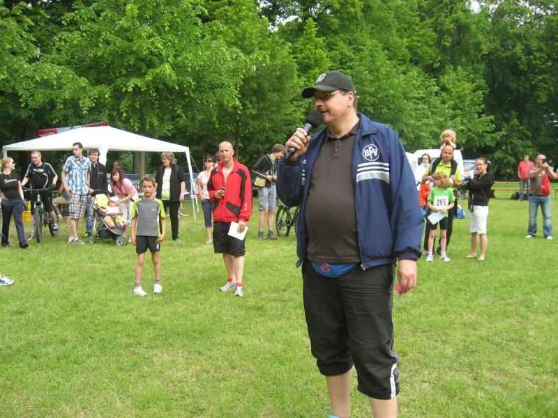 Verpasst! Gerade als sich Vater und Opa dem obligatorischen Gruppenfoto stellten, wurde der jüngste Spross der Familie Eisfeld, Jan, auf den Schnupperkurs über 1,1 Kilometer geschickt. Vater Jörg hatte Mühe den quirligen Haufen einzuholen. Erst als es doch ganz schön bergan ging, konnte er den Sohnemann ausmachen und ihn das restliche Stück hinein ins Ziel begleiten. Ein Erlebnis, was die beiden in Zukunft vielleicht öfter gemeinsam teilen. Jan hatte sich gut im Mittelfeld gehalten, musste im Ziel jedoch getröstet werden, hätte er doch wahnsinnig gern für Vater und Opa gewonnen.