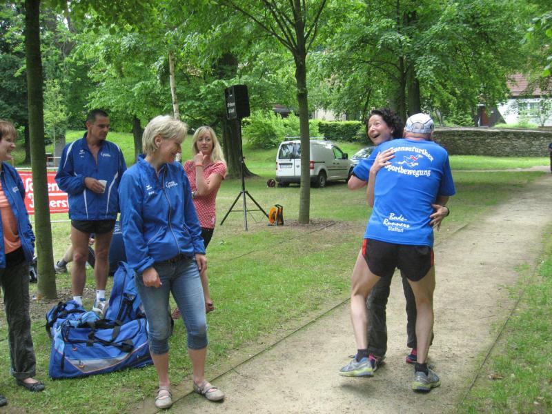 Dirk Meier kam als erster Bode-Runner nach den 21 Kilometern ins Ziel. Er hatte sein Tempo kontinuierlich durchgezogen, Börner musste bereits ab Kilometer sieben abreißen lassen. Jörg Schäper, Vater Eisfeld, Lutz Klauß und Opa Eisfeld folgten Schlag auf Schlag. Alle waren sich einig, eine harte aber sehenswerte Strecke. Angenehmer hätten es die Teilnehmer empfunden, wenn es noch eine zusätzliche Getränkestelle auf dem langen Kanten gegeben hätte. Eine Altersklassenauswertung bei den Männern war dem Wettkampfbüro bis zum Veranstaltungsende nicht möglich. So blieb es noch bis zum nächsten Tag spannend, welche Platzierungen und damit Cup-Punkte die Teilnehmer am Ende erlaufen hatten.