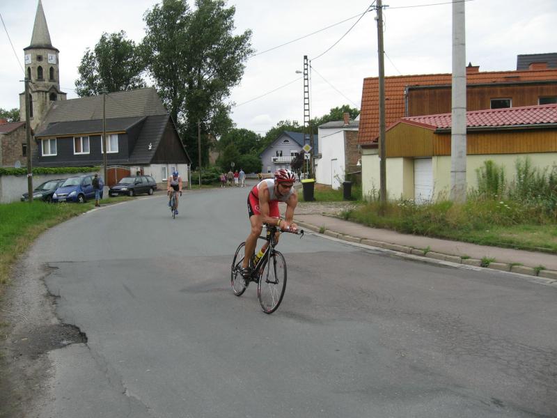Als bester Gaensefurther kam Blauwitz nach 12 : 52 Minuten aus dem See. Er trotzte auf dem Rad dem Gegenwind, Rückenwind stellte sich erst auf der Zielgeraden und bergab ein. Eine 52 Kilometer pro Stunde erreichte dabei Jens-Uwe Börner. Blickte man in Kelbra beim Kyffhäuser Triathlon vor zwei Wochen noch in ein schmerzverzehrtes Gesicht, als Blauwitz vor allem gegen die Hitze ankämpfte, lief er sichtlich entspannter die abschließenden zwei Schleifen über jeweils drei Kilometer und in 26 : 51 Minuten – gesamt also : 1 : 31 : 32 Stunden. " Ich habe heute Athleten geschlagen, die ich noch nie geschlagen habe ", richtete er seinen Blick zum Beispiel auf Holger Rothenberger von Eintracht Ebendorf, der vier Plätze und mehr als eine Minute später durchs Ziel kam. In der internen Wertung wurde Blauwitz von Detlef Schäfer gefolgt : " Ich hätte noch eine Runde laufen können ", sagte dieser nach seiner Zielankunft auf Rang 30. Schäfer ist nicht der beste Schwimmer ( 13 : 55 ), dafür holte er einiges auf dem Rad auf ( 55 : 36 ) – und nicht zuletzt in seiner Paradedisziplin, dem Laufen ( 27 : 27 ). In 1 : 36 : 58 Stunden gewann er in der Senioren 2.