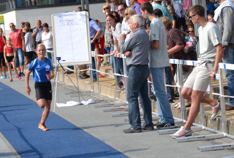 Im Olympiakomplex wurden im Rahmen eines Sportfestes aus den angereisten zehn besten Sportlerinnen der Altersklasse w11 in einem nochmaligen 30m Lauf fliegend die sechs Finalisten für den 50m – Endkampf ermittelt. Jeder hatte nur einen Versuch. Obwohl Alina ihr sehr gutes Ergebnis von der Qualifikationsrunde in Magdeburg mit 3,90 Sekunden nicht bestätigen konnte und in Berlin 3,98 Sekunden lief, qualifizierte sie sich zusammen mit Jona Bauer aus Stendal (auch 3,98 Sekunden) für den 6. bzw. 7. Platz im Finale. Da die beiden Mädchen zeitgleich waren und der Veranstalter es nicht übers Herz brachte, noch ein Stechen zu veranstalten, wurde zur großen Freude der Betroffenen kurzerhand ein siebenter Finalplatz vergeben.