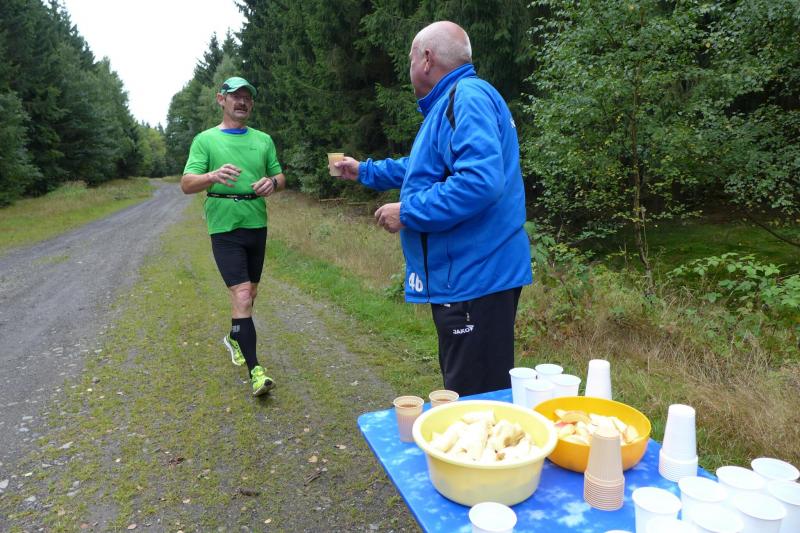 Wie jedes Jahr – und das nun schon zum 36. Mal in Folge, verstand der beliebte Moderator Tilo Friedrich, die Läufer und Gäste der Traditionsveranstaltung zu motivieren und zu unterhalten. Ob warmgelaufen oder nicht, pünktlich um 10.00 Uhr vollzog er für die 41 Teilnehmer den Startschuss über die anspruchsvolle 20-Kilometer-Distanz. Bis zur Selkemühle schlängelte sich die Laufstrecke durch das spätsommerliche Selketal. Zehn schnelle Kilometer lagen dort bereits hinter den fünf gestarteten Läufern der Gaensefurther Sportbewegung. Nun ging es ans Eingemachte, denn die nächsten zwei Kilometer hinauf zur Hohen Warte auf 375 Höhenmeter waren heftig. Der Anstieg wollte einfach kein Ende nehmen. Um für den Rest der Strecke noch ein paar Körner aufzusparen, war der Übergang in den schnellen Wanderschritt wohl die effektivste Maßnahme. Endlich oben! Nach einer ersten und auch letzten Verpflegungsstelle ging es in sanften Hügeln durch den Ballenstedter Forst, bevor die letzten drei Kilometer wieder hinab zum Ziel nach Meisdorf führten.