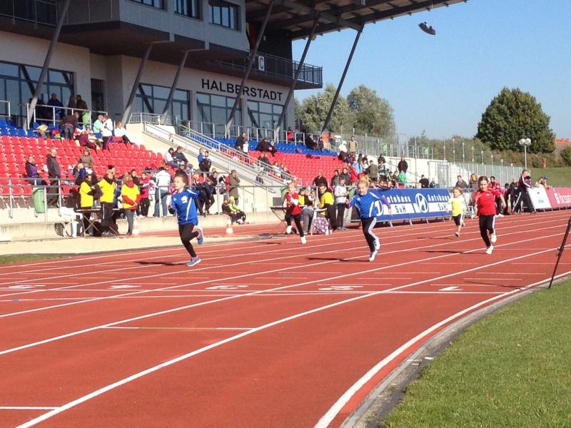 Zum letzten Wettkampf der Freiluftsaison folgte ein starkes Team von 10 jungen Gaensefurther Leichtathleten der Einladung des VfL Germania Halberstadt zur 1. Harzer Kindermehrkampf-Meisterschaft in das Friedensstadion. Kalter Wind und herbstliche Temperaturen erwarteten die aufgeregten Sportler in der Stadt am Harz. Ein perfekt organisierter Wettkampf sorgte dann für gute Stimmung bei Athleten und Zuschauern. Die Wertung erfolgte als Dreikampf mit 50m Lauf, Weitsprung, Schlagballweitwurf und außerdem als Vierkampf mit 800m bzw. 400m Lauf.