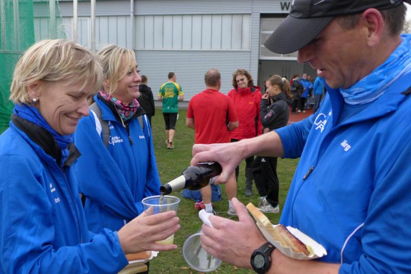 Schon bei der Wettkampfvorbereitung lag nicht nur der Nieselregen, sondern auch ein ganz besonderes Kribbeln in der Luft. Schließlich handelte es sich um eine Meisterschaft und so standen die Gaensefurther Freizeitsportler mit den schnellsten Läufern Sachsen-Anhalts an einer Startlinie. Die kurzen Distanzen versprachen Sprintcharakter, was auf der rutschigen Wiesenstrecke zur Herausforderung werden sollte. Hier waren die Profis im Vorteil, denn statt dicken Profilsohlen liefen sie auf leichten Spikes davon. Jawohl, auf und davon! Katrin Krebs, momentan schnellste Sprinterin in den Reihen der Bode-Runners, erstarrte kurz, als scheinbar mit dem Startschuss die Konkurrenz schon um die Ecke huschte. Also Schreck verdauen, ranlaufen und versuchen das Feld von hinten aufzurollen. Am Ende wurde sie schnellste Bode-Runners-Frau. In der starken Altersklasse W35 reichte die Zeit leider nur für einen fünften Platz. Mehr Glück hatte da Renate Liedtke. Sie kämpfte sich ebenfalls durch die 4,4 Kilometer lange Cross-Strecke und strahlte in der Altersklasse W60 mit einem dritten Platz.