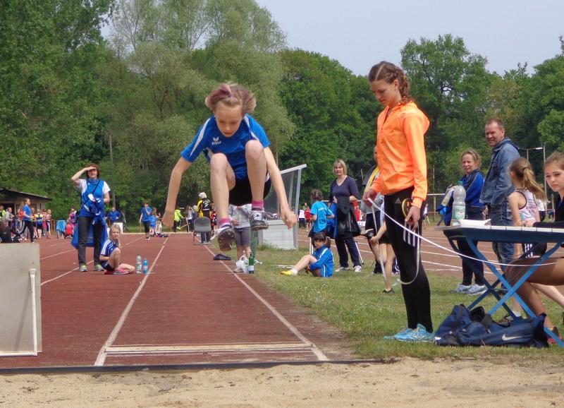 In gewohnter Weise konnte Michelle Otto(w8) die Konkurrenz schocken. Mit 8,66 Sekunden siegte sie deutlich im 50m Lauf auf der Aschebahn vor einer Läuferin aus Stendal. Ihre in Bernburg aufgestellten persönlichen Bestleistungen (PB) im Weitsprung und Ballweitwurf toppte sie erneut um 9 bzw. 6 Zentimeter. Das bedeutete den souveränen Sieg bzw. einen Platz im Mittelfeld. Ihre Zwillingsschwester Laura erreichte zwar in allen Disziplinen den Endkampf, zu einer Medaille reichte es mit 5. Plätzen im 50m Lauf und Ballweitwurf sowie Platz sieben im Weitsprung diesmal nicht. "Nina scheint noch nicht richtig in der neuen Wettkampfsaison angekommen zu sein", so der Kommentar von Mutter Nicole Ritter zur Leistung ihrer achtjährigen Tochter. Im Weitsprung kam diese zwar in die Nähe ihrer Bestleistung, im 50m Lauf und im Ballweitwurf blieb sie aber unter ihren Möglichkeiten. Diese 3 Mädchen der Altersklasse w8 wollten sich auch erstmalig in der 3x800m Staffel beweisen. Laura als Startläuferin übergab als 7. an Nina. Sie konnte als Fünfte an Michelle übergeben, die diese Position halten konnte und als 5. von 9 Teams ins Ziel kam. Leider wurden alle Staffeln in der U10 (Jahrgänge 2005-2007) zusammen bewertet. Obwohl unsere Mädchen nur 2 Sekunden hinter der schnellsten gleichaltrigen Staffel aus Stendal den Lauf beendeten blieben sie ohne Medaille. Trotzdem waren alle mit ihrer Leistung sehr zufrieden.
