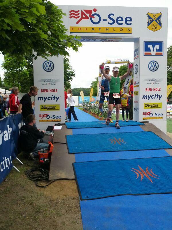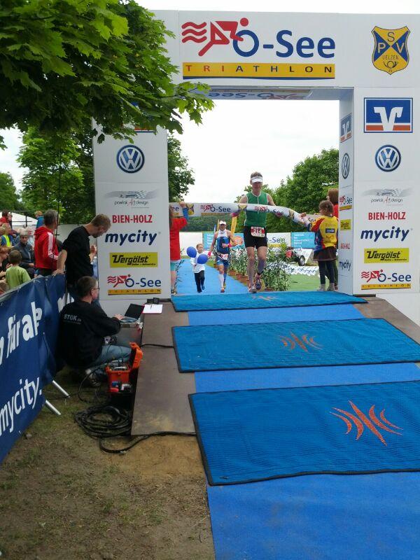 Am 01.06.2014 starteten beim 7.O-See Triathlon des Post SV Uelzen die Sportfreunde Martin Wille über die Olympische Distanz (1,5 km Schwimmen, 45 km Rad, 10,5 km Laufen) und Steffen Schöler über die Mitteldistanz (1,95 km Schwimmen, 90,6 km Rad, 21 km Laufen). Bei 17 °C Wassertemperatur, Luft gefühlte 12°C, ging es um Punkt 9:00 Uhr für Schöler an den Start am schön gelegenen Oldenstädter See. Hier hieß es dann zwei Runden mit einem kurzen Landgang zu absolvieren bevor es um 09:35 in den Wechselgarten und dann auf die Radstrecke ging. Zwischenzeitlich um 09:30 Uhr fiel dann auch für die Starter auf der Olympischen Distanz der Startschuss. Martin Wille kam nach 23:51 min. aus dem Wasser und lief in den Wechselgarten ein.