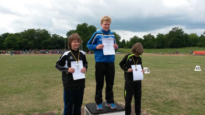 Mit dem Speerwurf, Mareks Lieblingsdisziplin, begann sein Wettkampf. Gleich beim ersten Wurf landete der Speer bei 34,12 m - persönliche Bestleistung. Diese Super-Weite konnte er dann nicht mehr steigern. Am Ende bedeutete das den Sieg und den ersten Bezirksmeistertitel für den Tarthuner. Sein Verfolger aus Stendal hatte mit 30,98 Metern deutlich das Nachsehen. Mit viel Elan ging es in den nächsten Wettkampf - das Kugelstoßen. Der erste Stoß brachte 8,10 m und ließ auf mehr hoffen, aber beim 2. Stoß zeigte der Kampfrichter ungültig an. Er hatte technische Einwände und die Regeln besagen, dass dann der Wurf nicht in die Wertung kommt. Das wiederholte sich mehrfach und verunsicherte den ehrgeizigen Athleten. An eine Steigerung seiner Eingangsweite war so nicht zu denken. Niedergeschlagen ging Marek aus diesem Wettkampf. Um so überraschter waren alle, als dann zur Siegerehrung aufgerufen wurde und er mit seinen 8,10 m vom ersten Versuch den 2. Platz belegte. Den 75 m Vorlauf bestritt Marek mit einer Zeit von 10,73 s in persönlicher Bestzeit. Damit war er 5. und für den Endlauf qualifiziert. Jedoch meldete sich nach dem Lauf wieder seine alte Verletzung und er überquerte als 8. in 11,10 Sekunden die Ziellinie.