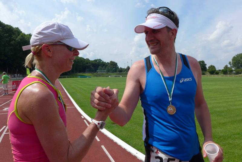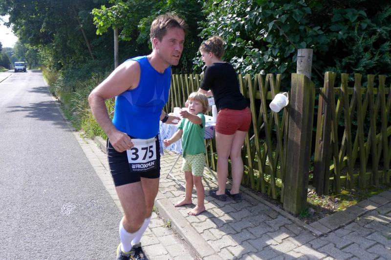 „Die Dusche danach“ ist für viele Volksläufer das allerbeste am Wettkampf überhaupt. Neben Dreck und Schweiß fällt auch alle Anspannung ab und die Freude über das Geschaffte signalisiert der Psyche grenzenlose Zufriedenheit. „Au Weia!“ schmunzelte eine Läuferin in Sicht auf ihre übergroßen Badelatschen. „Die haben wir in der Hitze des Gefechtes wohl vertauscht!“ Der Gatte im Nebenraum dürfte die größeren Schwierigkeiten gehabt haben.