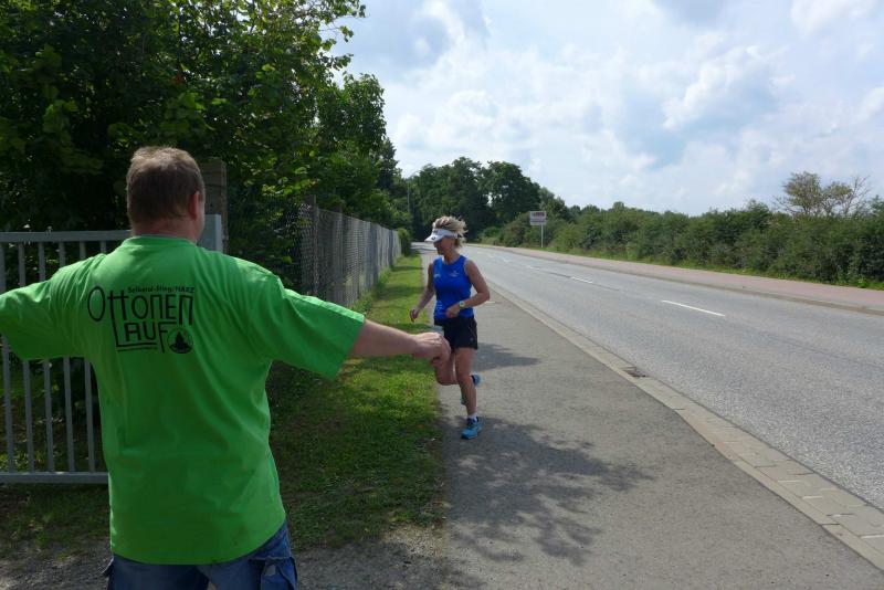 Drei weitere Starterinnen der Gaensefurther Sportbewegung nutzten den Ottonenlauf als erste lange Trainingseinheit für einen anstehenden Herbstmarathon. „Ein gutes, gleichmäßiges Tempo habt ihr Frauen immer!“ resümierte Ronald Kijok vom SV Concordia 1920 Nachterstedt und passte seinen Schritt den Bode-Runners an. Auch die Nordhessin Antje Hollstein reihte sich mit ein. Sie war mit der ganzen Familie angereist und belief auf diese Art und Weise die landschaftlich reizvolle Harzregion. Nach der Verpflegungsstelle am Osterteich trennten sich die Wege dann wieder. Petra Becker kam am besten mit den Bedingungen klar. Für jede Bergerklimmung belohnte sie sich mit einem kleinen Leckerli aus ihrem Laufgürtel und auch die Hitze konnte dem Blondschopf unter dem weißen Käppi nicht wirklich etwas anhaben. Sylvia Köhn und Sabine Börner stöhnten sich die Berge gemeinsam rauf. Nach 345 erreichten Höhenmetern und einem lauten Jubelschrei am Hagentalblick, ließen es die beiden hinab nach Bad Suderode locker austrudeln. Nun standen nur noch sechs heiße Kilometer an, die man Dank ausreichender Verpflegungspunkte gut getränkt absolvieren konnte. Die Eindrücke vom Zieleinlauf im Quedlinburger Stadion hielten noch an, da klatschte auch Kijok zufrieden ab. Sein grünes Finisher-T-Shirt, welches er sich extra für seine Ottonenläufe angeschafft hat, wird demnächst um einen weiteren Aufdruck ergänzt werden müssen. Unter respektvollem Beifall liefen viele weitere Sportler der Marathon- oder Ultradistanz über 69 Bergkilometer von Stiege bis nach Quedlinburg ein. Das wäre doch mal ein Gaensefurther Projekt für die kommende Laufsaison.