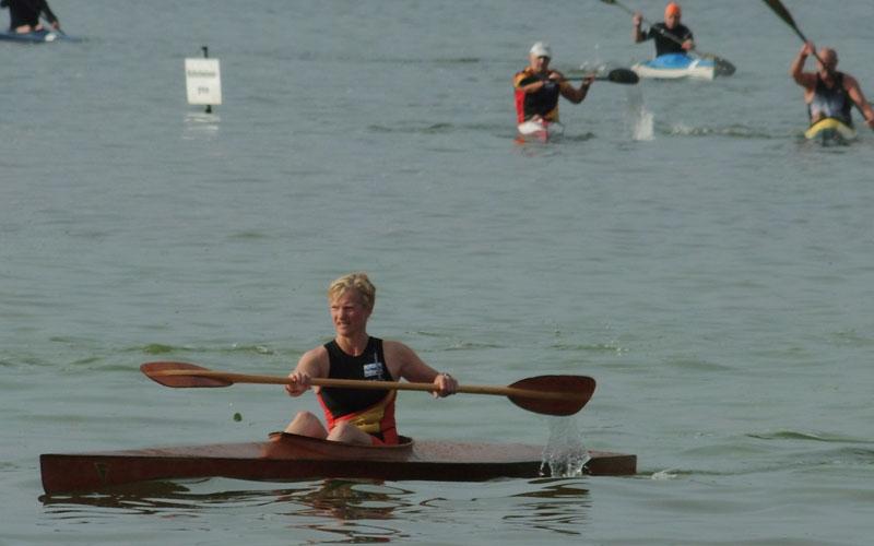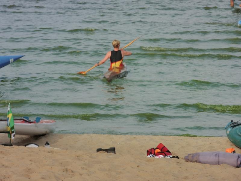 Beim BerlinMan am Wannsee hieß es für etwa 130 Quadrathleten aus 11 Ländern 750m zu schwimmen, 4 Kilometer zu paddeln, dann 24 Radkilometer durch den Grunewald zu fahren und abschließend nochmal 5 Kilometer auf der Laufstrecke zu absolvieren. Kompliment an die Veranstalter, die eine hervorragende Veranstaltung möglich machten, mit guter Stimmung und äußerst freundlichen und informierten Helfern. Ein Wettkampf der Quadrathleten muss im Voraus gut geplant werden und bedarf einiger Absprachen mehr. Zu allen Utensilien, die ein Triathlet benötigt, kommt noch eine komplette Kajakausrüstung dazu. An den aufwendigen Autoaufbauten für die Boote kann man sich schon im Vorfeld der Wettkämpfe gut erkennen. Da der Start bereits 8.30 Uhr am Samstag erfolgte, mussten die Kajaks am Vorabend am Wannsee abgelegt werden. Bereits um 6.30Uhr am Wettkampftag begannen die offiziellen Wettkampfvorbereitungen mit dem Check In für die Rennräder. Zum Glück, zeigte sich das Wetter von seiner besten Seite. Sogar die Sonne schien und kaum ein Windzug war auf dem See, was gleich eine entspannte Stimmung bei allen Wettkämpfern verbreitete. Wellen und Wind mögen die Kanuten in ihren kippligen Booten nämlich überhaupt nicht.