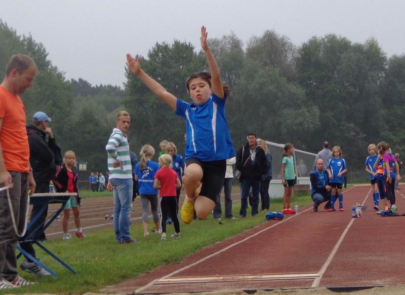 Die achtjährigen Mädchen des Vereins haben sich inzwischen zu einer Macht entwickelt. Michelle Otto glänzte dreimal mit Platz eins: im 50m Lauf, Weitsprung und 800m Lauf. Nur im Schlagballweitwurf musste sie drei Konkurrentinnen den Vortritt lassen, obwohl sie mit 22,07 Metern ihre PB um 3,5 Meter verbessern konnte. Eine der Konkurrentinnen war ihre Schwester Laura. Sie schaffte außer im Schlagballweitwurf mit 22,60 Meter (3.) auch im Weitsprung (2.) und 800m Lauf (4.) persönliche Bestleistungen und konnte zwei Mal zusammen mit Michelle einen Podestplatz einnehmen. Die Siegerin im Schlagballweitwurf hieß wie nun schon so oft Nina Ritter. Ein weiterer vorderer Platz gelang ihr im Weitsprung (3./PB), wo das Podest somit vollständig in Gaensefurther Hand war. Im 50m Lauf wurde Nina Fünfte und im 800m Lauf Siebte. Weil Fabienne Sämisch größenmäßig oft Nachteile gegenüber Gleichaltrigen hat, muss sie sich besonders anstrengen, um mithalten zu können. Das gelang ihr gut, aber für einen Spitzenplatz reichte es diesmal mit 2 Mal Platz sechs, acht und neun nicht. Den Höhepunkt bildete für die Mädchen der Altersklasse w8 die Staffel. Mit großem Engagement waren Nina, Laura, Fabienne und Michelle bei der Sache, siegten deutlich und durften sich über die begehrten Goldmedaillen freuen.