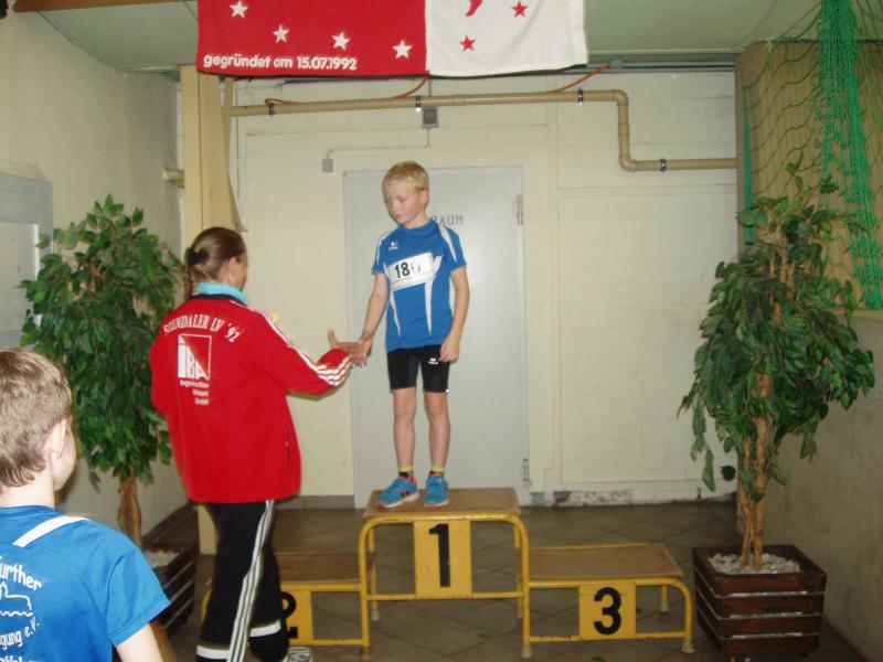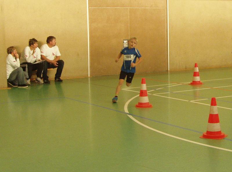 Der Sieg ging jedoch an Lukas Ladehoff, der sich mit 3:13,75 Minuten in einem Teilnehmerfeld von 9 Mitstreitern durchsetzte. Insgesamt waren 5,5 Runden zu laufen und schon von Anfang an ordnete er sich vorn mit ein. In Runde zwei überholte er dann den bis dahin Führenden und ließ sich bis zum Schluß von dieser Position nicht mehr verdrängen. Freudestrahlend lief er mit weitem Vorsprung durchs Ziel. Im 50m Lauf erreichte Lukas mit 9,26 Sekunden nicht den Endlauf und im Weitsprung wurde er mit 2,92 Metern Elfter.