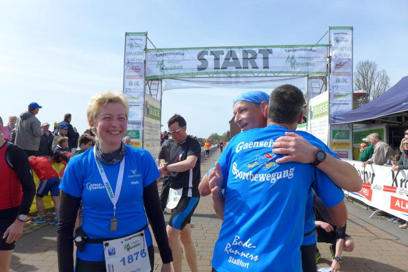 Mit 2.000 Anmeldungen war die achte Auflage des mittlerweile größten Volkslaufes der Altmark restlos ausgebucht. Vorsorglich hatten die zwölf teilnehmenden Bode-Runners der Gaensefurther Sportbewegung diese „Trainingseinheit“ sehr zeitig angemeldet. Als letzter Test vor dem Prag-Marathon galt es, den derzeitigen Trainingsstand abzurufen. In dem riesigen Läuferfeld kassierte Katrin Krebs ganz locker den zweiten Platz in der Altersklasse W35 über die Halbmarathondistanz. Auch wenn sie wertungsmäßig in Tangermünde nicht auf der Hauptstrecke der Frauen unterwegs war, sammelte sie damit dennoch wichtige Wertungspunkte im Novo-Nordisk- Landescup.