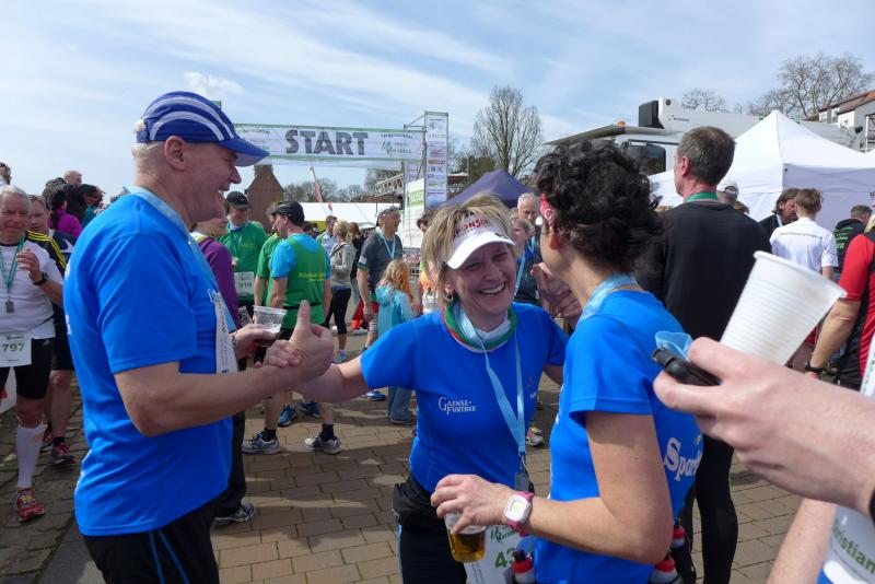 Alle warteten und dann kam Schlenker! Fix und fertig, aber stolz wie Oskar, finishte er nach schweren 04:18 Stunden. Erst im Nachgang registrierte die Gruppe, dass er der erste Marathonläufer in der Altersklasse M30 war. Erster Marathon, erster Platz, was für ein Tag! Auch für Heidi und Werner Schwenke vom BSV Eickendorf lohnte sich der Kampf beim 8. Elbdeichmarathon. Mit einem zweiten und einem ersten Platz in ihren Altersklassen bewiesen sie wieder einmal mehr ihre Laufstärke.