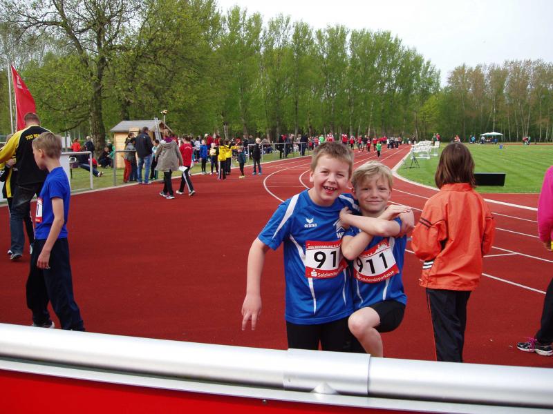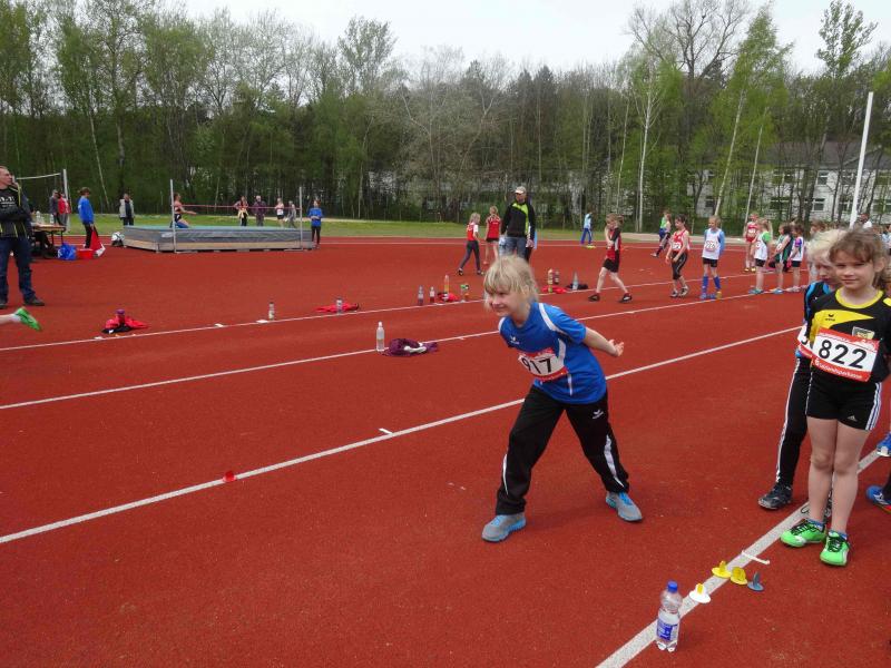 Lukas Ladehoff (m9) hingegen stellte sich in 4 Disziplinen der Konkurrenz. Mit 3:08,23 Minuten im 800m Lauf verpasste er knapp einen Urkundenplatz, während er beim 75m Sprint, Weitsprung und Schlagballweitwurf im Mittelfeld landete. Neu im Team war Jeremias Simon (m8), der sich im Weitsprung und im Ballweitwurf achtbar schlug und sogar eine Urkunde für Platz sechs mit nach Hause nehmen konnte. Im 50m Lauf erreichte er nicht das Finale.