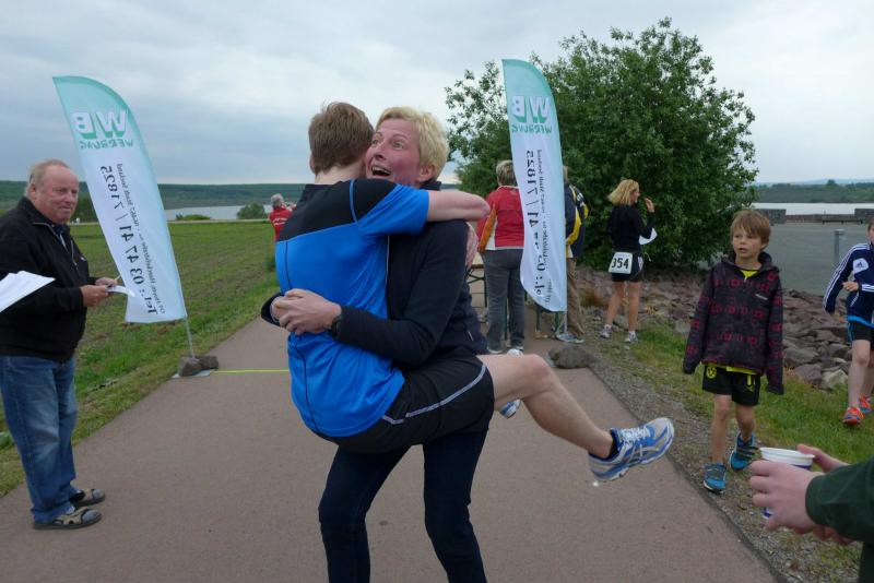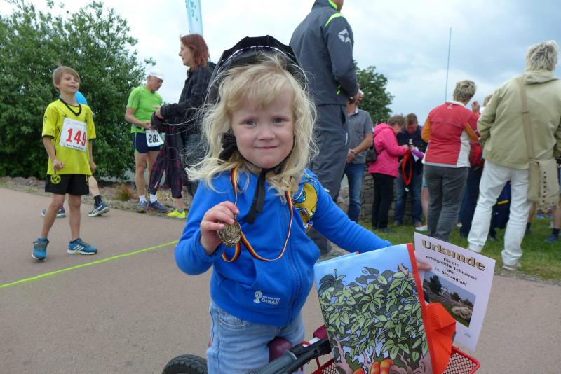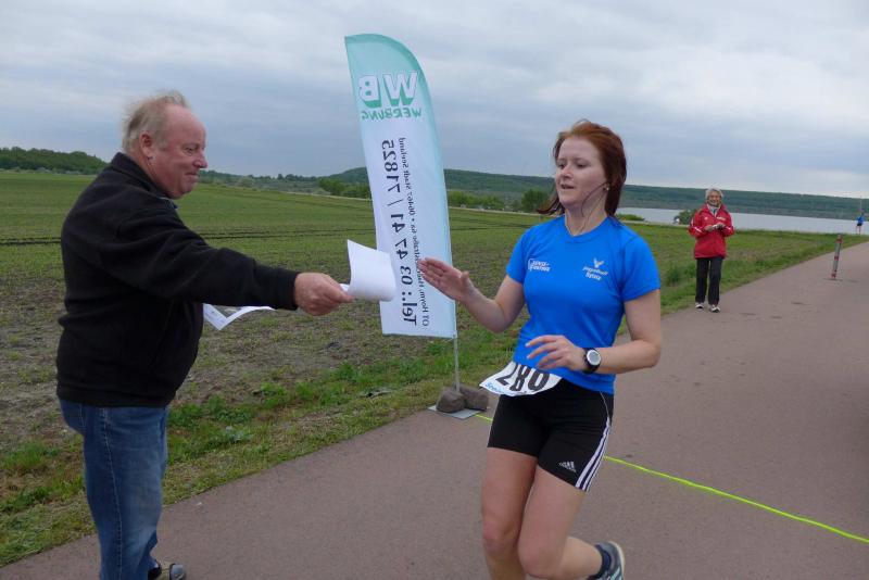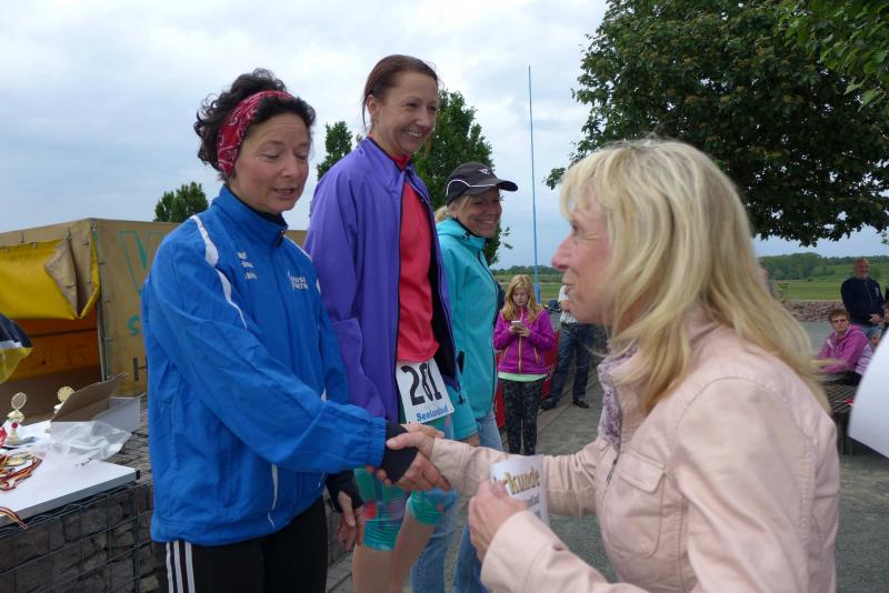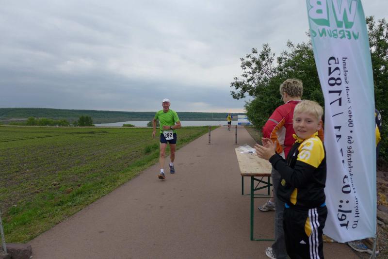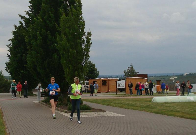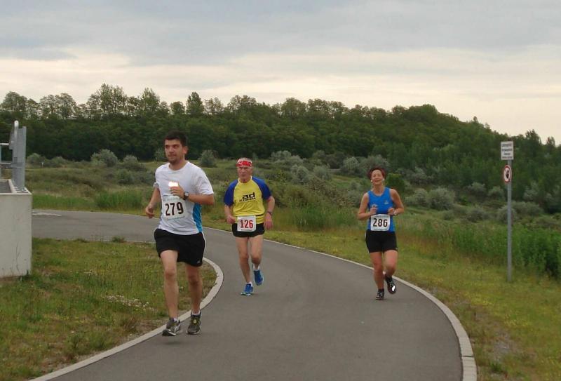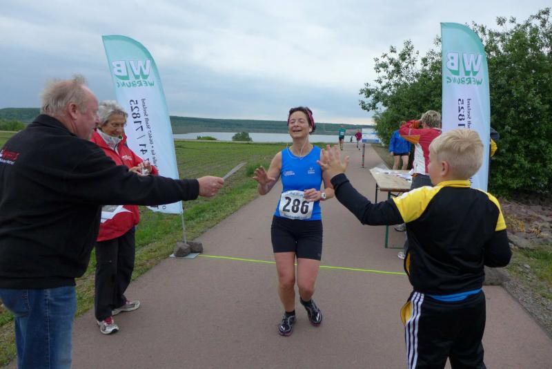 Mit dem gemeinsamen Start über die 7,2 und 14,4 Kilometer wurde es dann auch für die Hauptläufe ernst. Der Kurs führte zuerst durch die bunte Schadelebener Ferienhaussiedlung, noch einmal zurück zum Start- und Zielbereich, bevor der Abenteuerspielplatz bei Neu Königsaue angelaufen wurde. Auf der Seepromenade führten die letzten zwei Kilometer wieder zurück zum Aussichtspunkt nach Schadeleben. Bis auf einen heftigen Anstieg versprach die Strecke schnelle Zeiten. Holprige Wiesen- und Schotterwege verliehen dem Kurs zudem Cross-Charakter. Für die Langstrecke ging es auf eine zweite schweißtreibende Runde. In den dichten Waldabschnitten dämmerte es bereits, ein Zeichen dafür, wie spät es eigentlich schon war. Als der frische Seewind wieder zu spüren war stand dann fest: „Jetzt ist es nicht mehr weit!“ Bis auf den Fotografen, konnten alle Bode-Runners in ihren jeweiligen Altersklassen einen Podestplatz verbuchen. Sylvia Köhn nahm für den dritten Platz auf der Langdistanz im Gesamtklassement der Frauen noch einen Pokal mit nach Hause. Was für ein Start in das Wochenende!