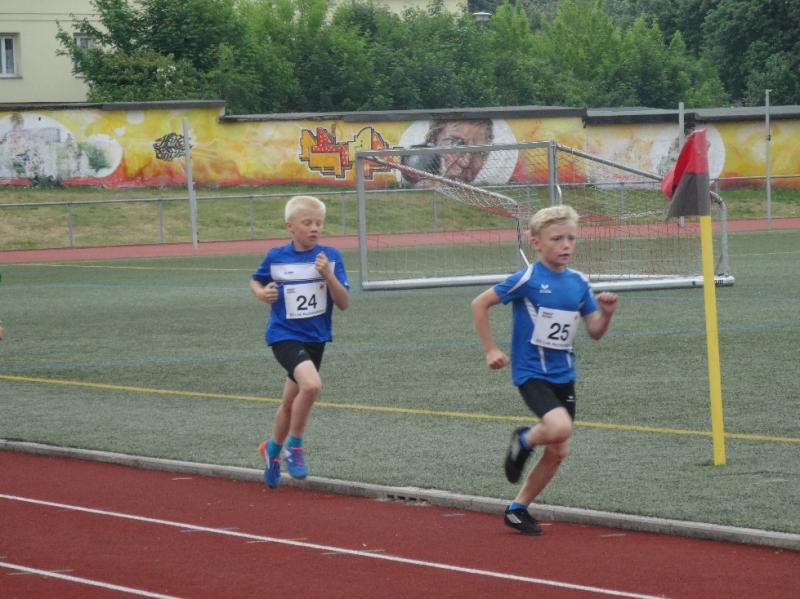 Fabienne Sämisch (w9) stellte sich der Konkurrenz im Dreikampf und im 600m Lauf. Für ihre Ergebnisse von 9,16s(50m)/2,96m(weit)/ 21,50m(Ball) im Dreikampf standen 874 Punkte (PB) und Rang 6 am Ende zu Buche. Besonders machte sie aber im 600m Lauf auf sich aufmerksam. Am Anfang unter den Führenden, musste sie das Tempo wegen Schmerzen im Oberschenkel reduzieren und fiel zurück. Auf der Zielgeraden biss das zierliche Mädchen dann aber die Zähne zusammen, überholte kurz vor der Ziellinie noch eine Konkurrentin und kam mit PB von 2:27,13 Minuten ins Ziel. Auch wenn sie die Sympathien der Zuschauer gewonnen hatte, für einen Podestplatz reichte es leider nicht.