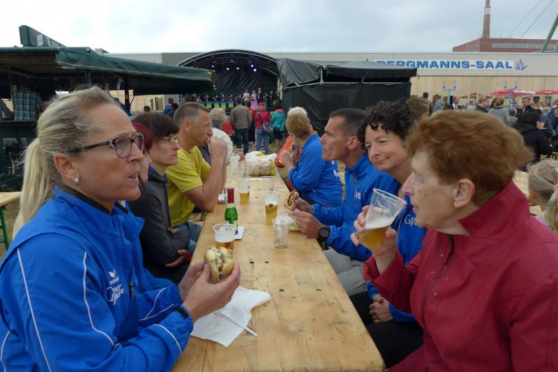 Als Erlebnislauf ausgeschrieben, verzichtete der Veranstalter auf Zeitmessung und Altersklassenwertung. Lediglich die drei schnellsten Frauen und Männer wurden genau registriert. Umso erfreulicher war es am Ende, dass Platz drei bei den Frauen an einen Bode-Runner ging. Katrin Winkler-Hindricks freute sich über Blumen und Sport-Gutschein und versicherte den Vereinskammeraden, trotz des schnellen Tempos ausreichend schöne Erlebnisse gehabt zu haben. Im Rahmen der Festveranstaltung bot sich ein weiteres Mal die Gelegenheit, diesmal in aller Ruhe und ohne große Kraftanstrengungen den Kalimandscharo mit einem Bus zu erkunden.