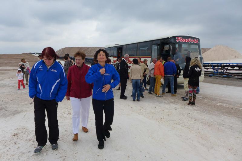 Mit dem Salutschuss der Schricker Schützen begann die originelle Führung durch das Betriebsgelände zunächst am Zielitzer Schwimmbad. Vorbei an der Straußenfarm „Glück Auf“, registrierte man die emsigen Vorbereitungen auf den angrenzenden Festwiesen. Spätestens nach dem Passieren des Pförtnerhäuschens offenbarten sich die gigantischen Betriebsanlagen für die aufwendige Kaliproduktion. „Immer schön dem Förderband folgen!“, lautete die einfache Wegbeschreibung des freundlichen Streckenpostens, der sich irgendwie schelmisch die Hände rieb.