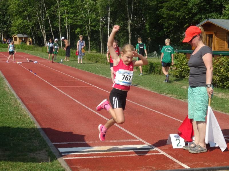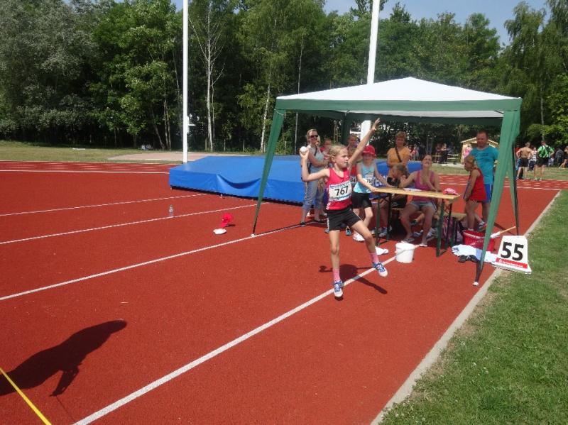 Einen sehr erfolgreichen Tag hatte auch Fabienne Sämisch (w9). Mit 3 persönlichen Bestleistungen (Ball-25,72m (2.), 50m-8,97 (3.), weit-3,19m (3.) durfte sie drei Mal auf dem Podest ihre Medaillen in Empfang nehmen.