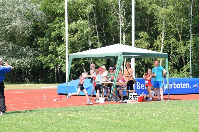 Celine Ladehoff (w13) hatte sich für Kugelstoß und 800m Lauf entschieden. Dass die Kugel bei 7,18m landete, löste bei ihr große Freude aus, zumal sie damit auch eine neue PB vorweisen konnte. Der 800m Lauf fiel dann wie auch bei den anderen Athleten der Hitze zum Opfer.