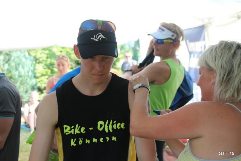 Seine erwachsenen Teamkollegen hatten 1,5 km zu schwimmen, 43,5 km Rad zu fahren und 10 km zu laufen. Die beste Zeit der Gaensefuther von 2:27:26 Stunden schaffte Toni Keller. In Altersklasse mAK3 wurde er Zehnter. Steffen Schöler (Sen2) folgte ihm mit 2:36:13 Stunden auf Rang 8 in seiner Altersklasse. Ebenfalls Achter wurde Stephan Kühne in Altersklasse Sen1 mit 2:49:22 Stunden.