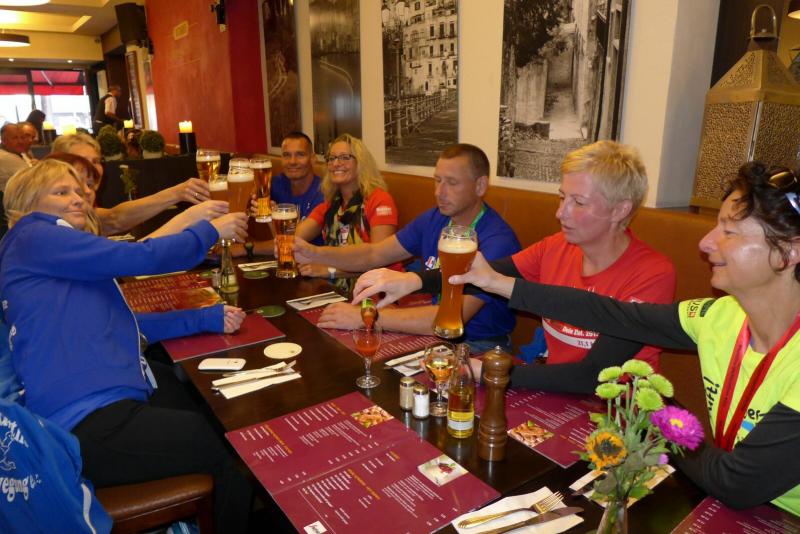 Auf der anschließenden Verpflegungsstrecke blieben keine Wünsche offen und die erlösende warme Dusche spülte sogar ein paar Schmerzen weg. Meier hatte schon lange geduscht und die Halbmarathonis waren nach ihren Läufen allesamt in Feierlaune. Bei Kölsch und Köbes ließen die Bode-Runners der Gaensefurther Sportbewegung ihr Highlight angemessen ausklingen.