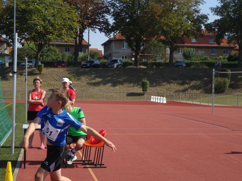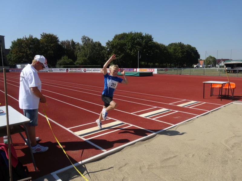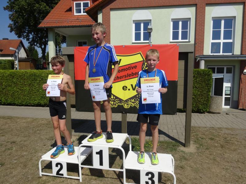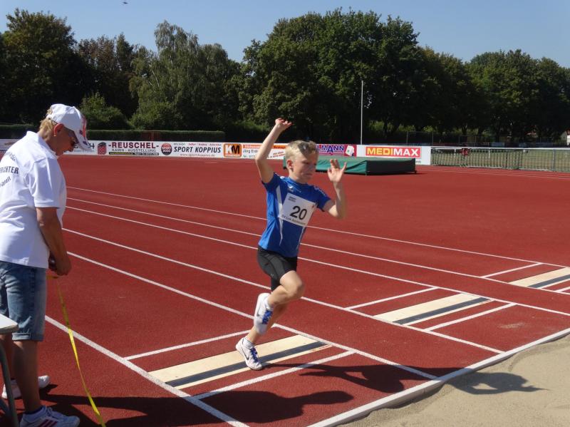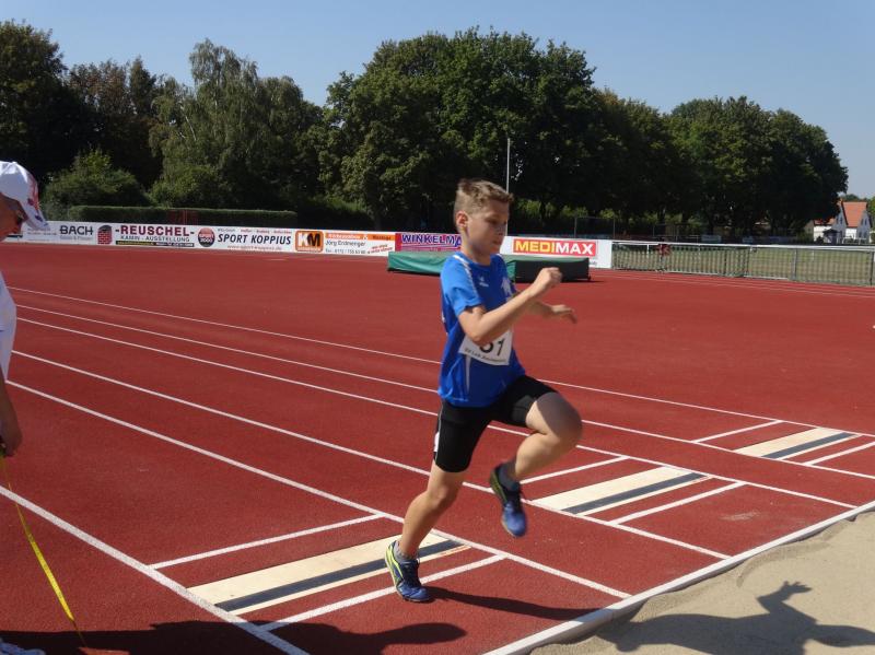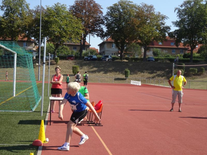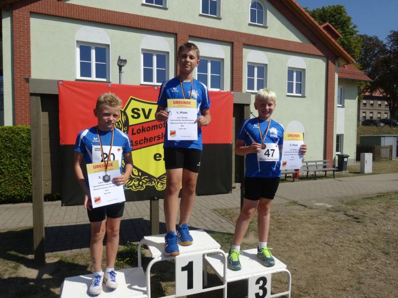 Die größte Gruppe in einer Altersklasse bildeten die 10 jährigen Jungen. Mit 8,09 Sekunden im 50m Lauf, 4,03 Meter im Weitsprung und neuer persönlicher Bestleistung (PB) von 34,00 Meter im Schlagballweitwurf wurde Lars Weidig seiner Favoritenrolle laut Anmeldeliste gerecht und sicherte sich den Sieg im Dreikampf mit 1012 Punkten. Auf Platz 2 folgte Lukas Ladehoff (50m-8,80s/weit-4,43m/Ball-30,50m) mit 956 Punkten. Der 3. Podestplatz schließlich gehörte Jan Hübner (50m-8,56s/weit-3,63m/Ball-32,50m (PB). Trainingskamerad Marc Krüger, bisher mit wenig Wettkampferfahrung, erreichte mit (50m-9,12s/weit-3,43m (PB)/Ball-20,00m(PB) und 717 Punkten Rang sieben. Aber auch er ging an diesem Tag nicht leer aus und wurde mit einem Sprung auf das Treppchen belohnt, denn im 800m Lauf konnte er sich mit 3:16,13 Minuten über Platz drei freuen.
