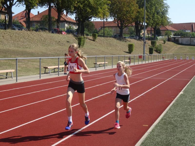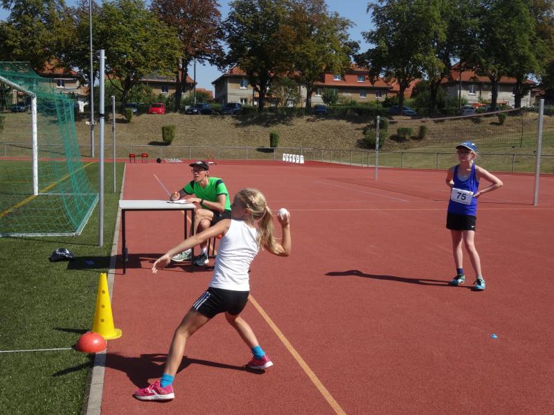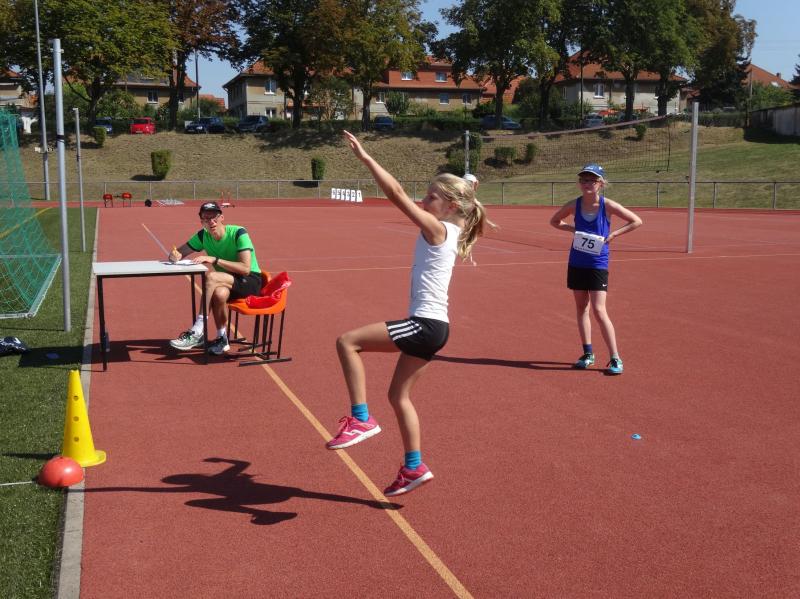 Bei den Mädchen der Altersklasse w10 stellte sich Fabienne Sämisch nach längerer Wettkampfpause ihren Konkurrentinnen. Mit 2 neuen persönlichen Bestleistungen von 8,79 Sekunden über 50m und 3,27 Meter im Weitsprung erkämpfte sie sich zusammen mit 22,50 Meter im Schlagballweitwurf die Silbermedaille im Dreikampf (963 Punkte). Als sie sich über 800m mit weitem Vorsprung den Sieg holte, war die Freude riesengroß.
