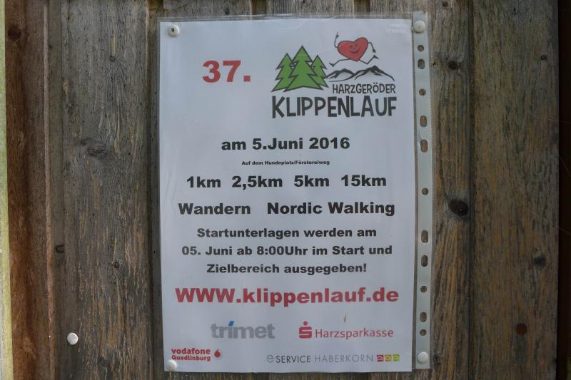Am 5. Juni 2016 fand im Wanderparadies Harzgerode zum 37. Mal der traditionelle Klippenlauf durch die Harzer Wälder statt. Die Strecke führt bergab nach Mägdesprung, wieder bergauf durch den sogenannten Pioniertunnel und zurück nach Harzgerode. Dieser Herausforderung über 15 Kilometer stellten sich neben 94 weiteren Startern diesmal nur die Gaensefurther Jens-Uwe Börner und Triathlet Jürgen Eisfeld. Leider verletzte sich Jürgen unterwegs den Fuß und musste abbrechen. Jens-Uwe kam mit einer Zeit von 1:32:53 Stunden als Elfter seiner Altersklasse ins Ziel.