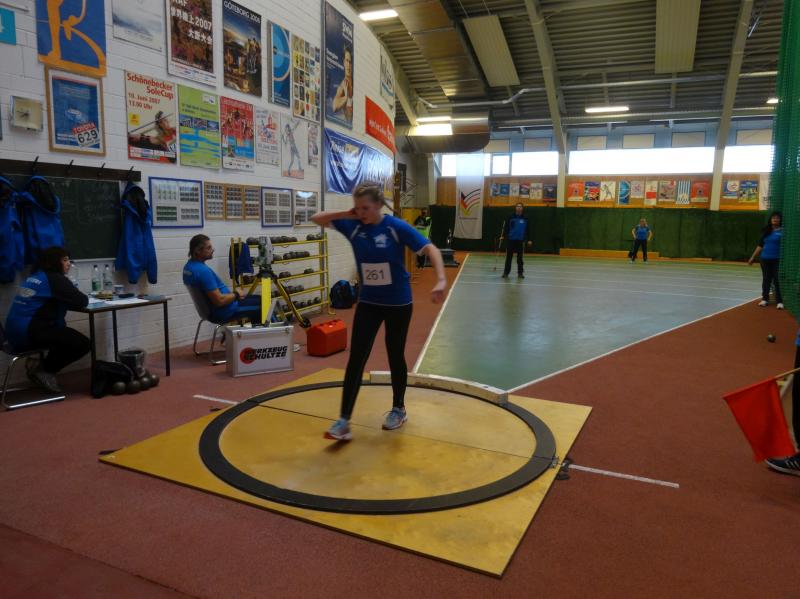Für Celine begann die Konkurrenz mit Kugelstoßen. Da die Athletin sich noch nicht auf eine bestimmte Disziplin festgelegt hat, war es für sie nicht leicht, unter den Spezialistinnen bestehen zu können.  Aber die Hecklingerin ließ sich nicht unterkriegen. Obwohl sie mit der Weite von 7,42 Meter unter ihrer Bestleistung blieb, sicherte sie sich trotzdem den Bronzeplatz. Als 2. Disziplin wählte sie den 800m Lauf aus. Vom Start an auf einer hinteren Position, kämpfte sie sich an einer nach der anderen Mitstreiterin vorbei und befand sich schon im vorderen Mittelfeld. Dann plötzlich- der Gesichtsausdruck ließ nichts Gutes ahnen. Es war das Knie, was ihr Probleme bereitete und nun musste sie all ihre Konkurrentinnen wieder vorbei ziehen lassen. Zwar hielt sie noch bis ins Ziel tapfer durch, aber ihre Medaillenhoffnung war damit geplatzt.