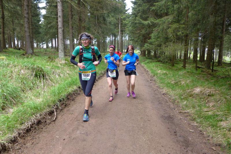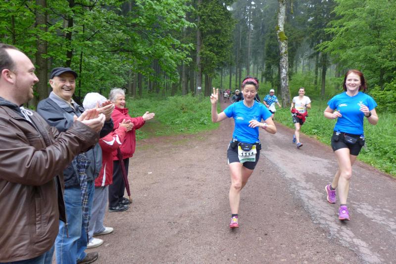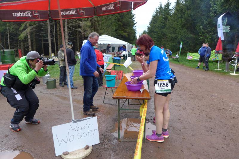Kein Zeitlimit hatten sich Sylvia Köhn und Sabine Börner gesetzt. War Börner mit ihrer Zeit von 08:48 Stunden vor drei Jahren selig, galt bei ihr das Motto genießen, motivieren und ankommen. Bereits mit Übergabe der Startnummer mit den Ziffern „1111“ resümierte sie gelassen: „Das wird mein Lauf!“ Köhn schloss sich gerne den Routiniers an. Bei der Harzquerung über 51 Kilometer hatte sie erste Erfahrungen mit einem Ultralauf gemacht, mehrere Marathons galten der Vorbereitung, alles und allein dafür, diese Strecke durchzuhalten. An der Ebertswiese bei Kilometer 37,5 spürten viele Läufer schon einmal nach. Hier war die Hälfte bereits geschafft, reichte die Kraft aber für den Rest der Strecke? Mit der Verpflegung in der Hand wurde der nächste Berg von vielen nur noch im schnellen Schritt gegangen. Leises Gestöhne und schmerzverzogene Gesichter hielten die Fotografen an der Steigung für die Ewigkeit fest, bevor die Beine wieder im gleichmäßigen Rhythmus laufen konnten.