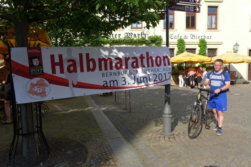 Im Hinblick auf das Reformationsjahr 2017 entschieden sich die Läufer der Gaensefurther Sportbewegung für eine Teilnahme am Luther-Lauf in Bernburg und ließen dafür schweren Herzens den Konradsburglauf in Ermsleben sausen. Unter der Federführung des KreisSportBundes Salzland e.V. (KSB) sollten die Starter aber durchaus Gefallen an diesem einmaligen Luther-Lauf haben. Als zweiter Wertungslauf in der Solvay-Cup-Serie ausgeschrieben, umrahmte bereits am Vorabend eine leckere Nudelparty die Ausgabe der Startunterlagen. Die ersten 95 Angemeldeten erhielten dann auch ihr ganz spezielles Unikat, ein Lauf-Shirt auf dem die jeweilige Luther-These aufgedruckt war. Aktueller hätte der KSB für seinen Lauf nicht werben können, wo doch geschichtlich mit den 95 Thesen gegen die Ablasspraxis am 31. Oktober 1517 die Reformation ihren Anfang nahm. 500 Jahre später nun, wo sich die neuen Erkenntnisse bis in die Gegenwart ziehen, beschreibt der Luther-Lauf einen Teil des langen Weges. Hatte sich der KSB nur auf die Halbmarathondistanz festgelegt, war die Teilnahme doch eher routinierten Läufern vorbehalten. Lediglich Walker konnten ebenfalls über diese Distanz starten.