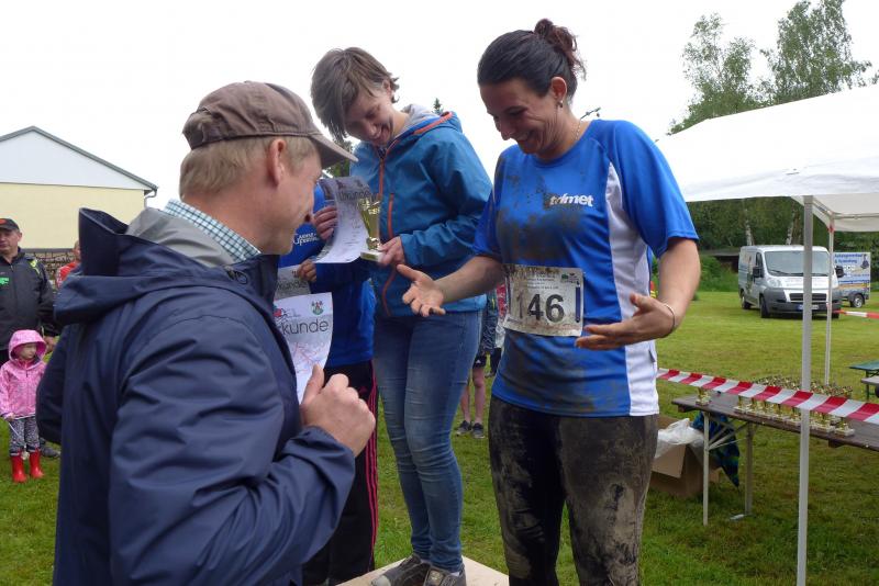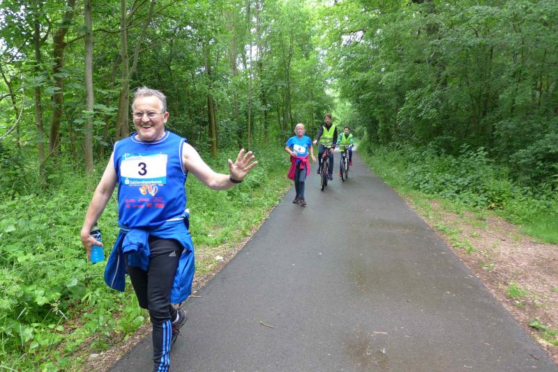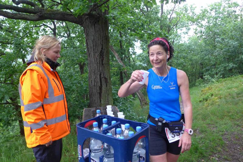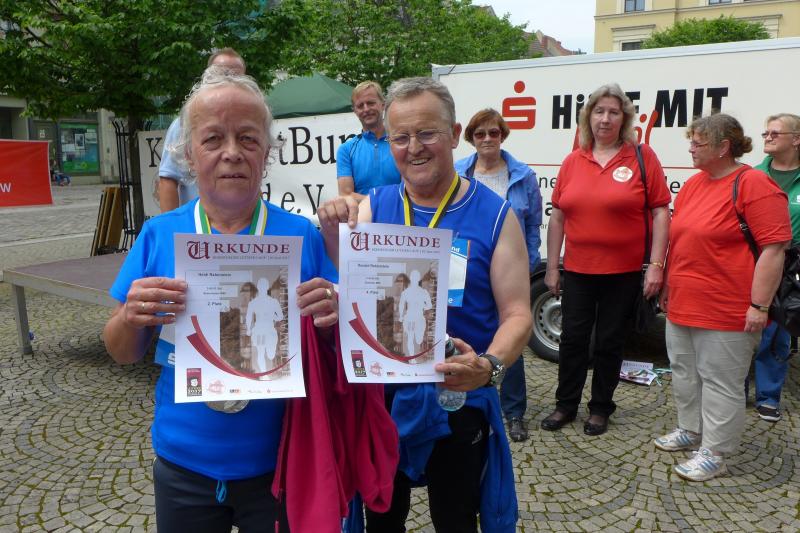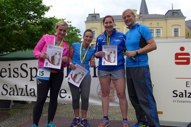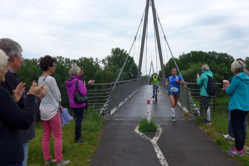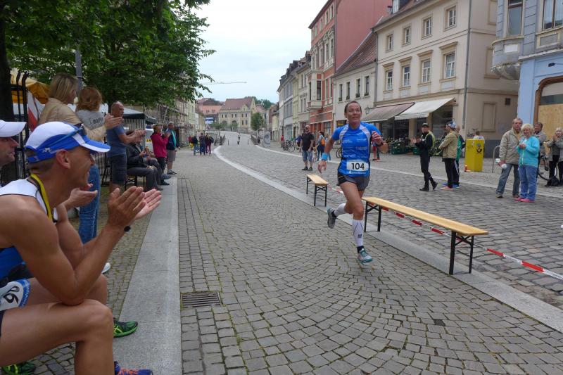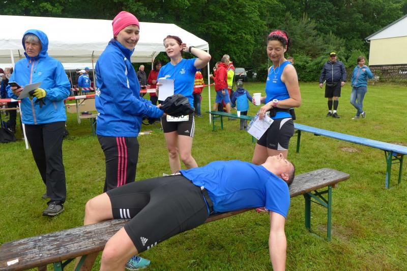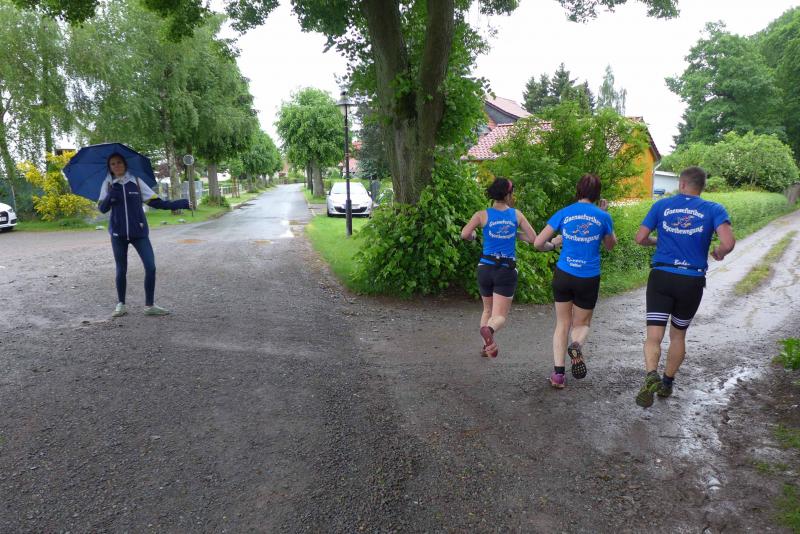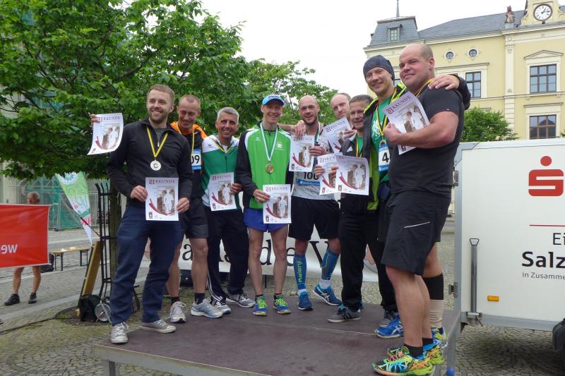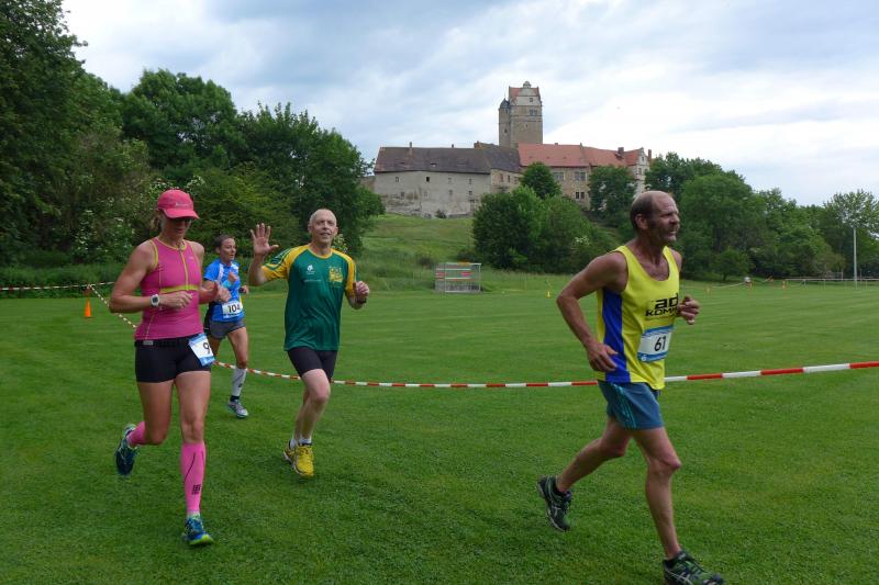 Heidi Rabenstein von der Gaensefurther Sportbewegung wollte diese Herausforderung zusammen mit ihrem Mann Ronald angehen. Mit allen guten Wünschen der Vereinskollegen erfolgte der Startschuss zusammen mit 130 Teilnehmern auf dem Alten Markt in Bernburg. Die Regenwolken hatten sich bereits vor dem Start ordentlich entleert und sollten die Aktiven noch fast über die gesamte Streckenlänge begleiten. Es ging am Bernburger Tiergarten vorbei, immer der Saale durch das dichte Grün folgend, bis in den Auwald nach Plötzkau. Auf dem Sportplatz eröffneten die Streckenposten den Läufern, dass doch bitte zwei Runden zu laufen seien. Was für ein Spaß durch das nasse Gras, spätestens jetzt waren auch die Strümpfe nass. Das erhabene Schloss grüßte vom Schlossberg und wachte über die Einhaltung der Rundenzahlen: „Hey Silvio, zurück! Zwei Runden musst du hier!“ ermahnte Jens-Uwe Börner seinen Kontrahenten vom BSV Eickendorf und verwies ihn in Runde zwei durch das nasse Gras. Börner verlor auch die Spitzengruppe der Frauen nie aus den Augen und erlebte den Zweikampf zwischen Ina Schöler (ZLG Atzendorf) und Stefanie Nowak von der Gaensefurther Sportbewegung direkt mit. Zurück in Gröna, musste Nowak nach der Saaleüberquerung dann abreißen lassen. Am anderen Flussufer ging es zurück nach Bernburg. Schöler meisterte ihren ersten Lauf in diesem Jahr mit Bravour und meldete sich mit dem Gesamtsieg bei den Frauen in beeindruckender Wettkampfform zurück. Bei den Männern holte sich Toni Keller in nur 01:18:05 den Pott über den Gesamtsieg. Im vereinsinternen Duell der Triathleten war Maik Löwe am laufstärksten, gefolgt von Stefan Berger und Steffen Schöler, die mit ihren Zeiten mehr als fit sind für die laufende Triathlonsaison. Sein wachsames Auge und die Pace mit den schnellsten Frauen des Laufes, verhalfen am Ende auch einem überglücklichen Börner auf das Podest. Kathleen Mahler finishte nach dem Rennsteig zufrieden ihren zweiten Halbmarathon und ihr Mann Nico reformierte quasi seine Bestzeit über diese Distanz um ganze zehn Minuten. Sabine Börner freute nach dem absolvierten Ultra, dass die Beine auch noch einen schnellen Lauf hinbekamen.